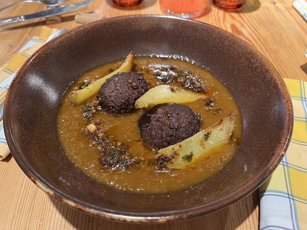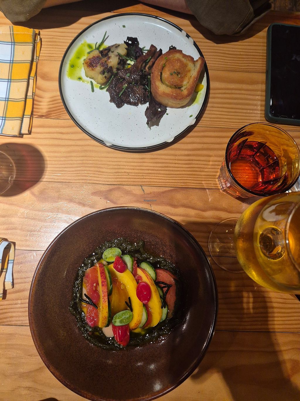 Rasoterra does amazing high-end, local ingredient based, vegan food. The menu is changing all the time, but we've had great meals both times we've visited. They also have a large variety of natural wines and wine pairing for your meal. A great date night or special occasion destination.