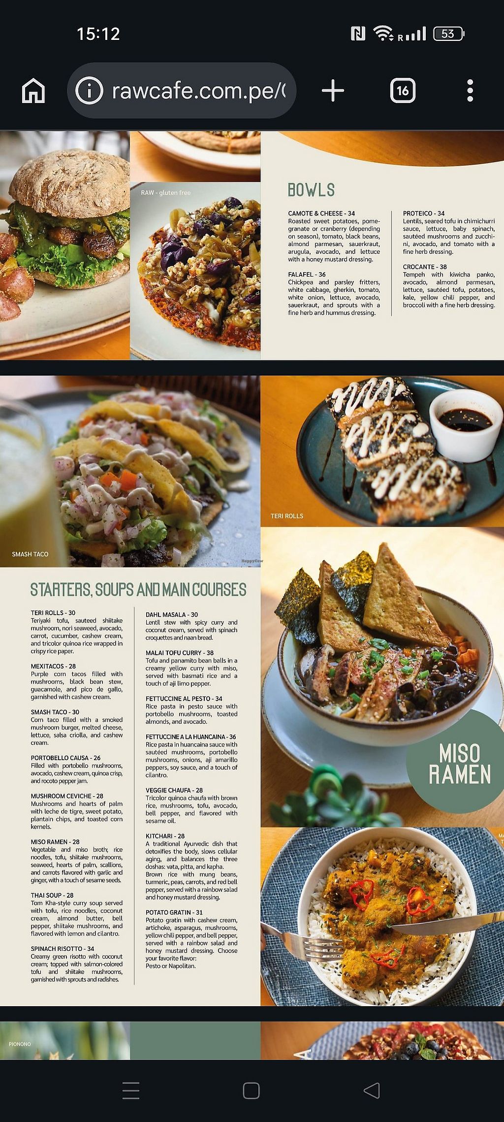I has a "Proteico" bowl (tofu, lentils, avocado, salad leafs, tomatoes, spinaches, zucchini, mushrooms), abundant with a delicious sauce, a coconut milk with Maca and a "vegan bite" as dessert (cashew with caramel and chocolate). It was excellent. All that for 62 sols (about 16 USD) plus tip. The menu is only in Spanish but with several photos. And one of the girls at the counter speaks fluent English.