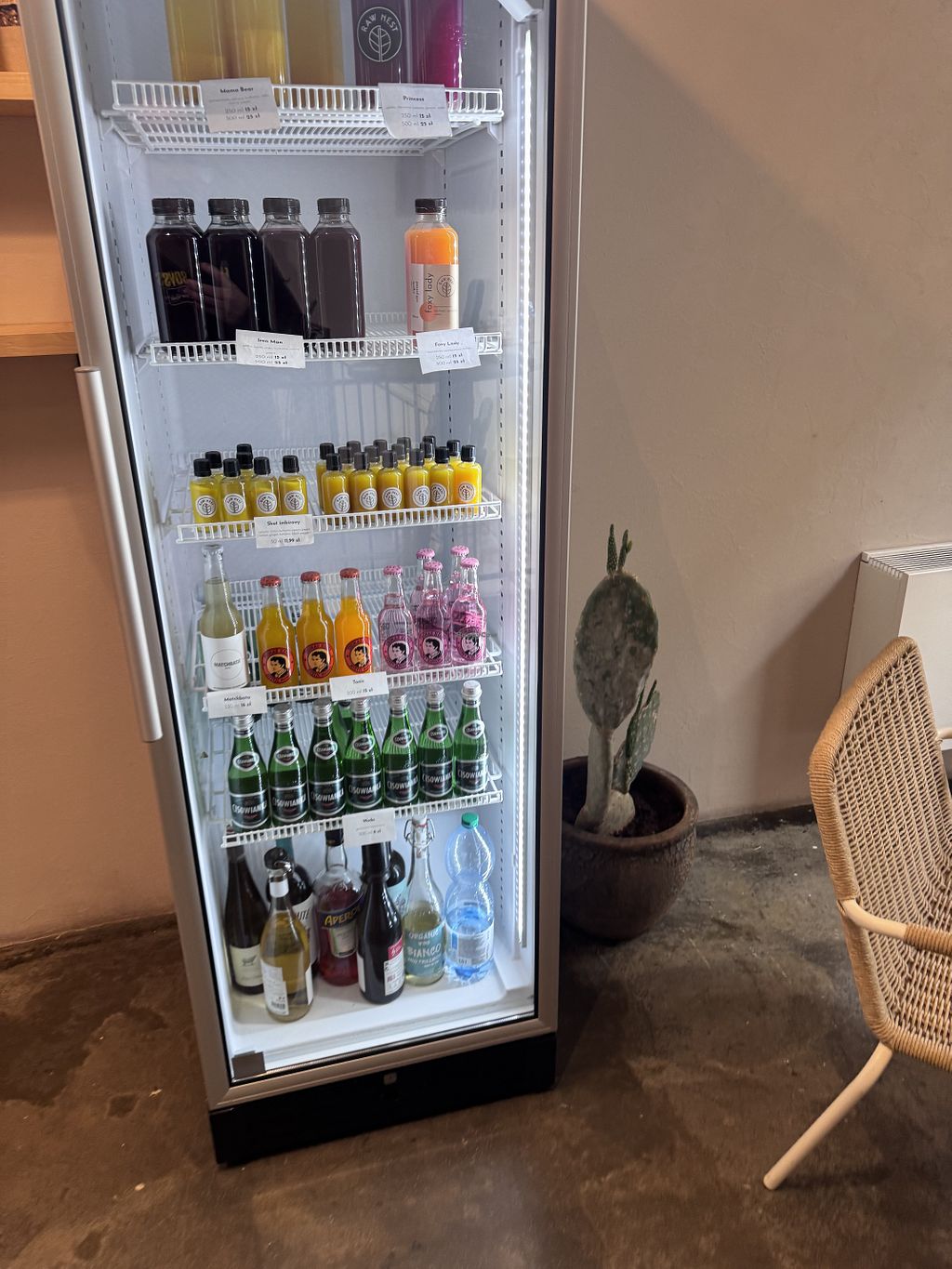 In the fridge by the counter, they have many drink which are all made with wholefood ingredients. All are unique and don't cost much, so worth giving them all a try. Ironman is proper lovely though with a rich sweetness.