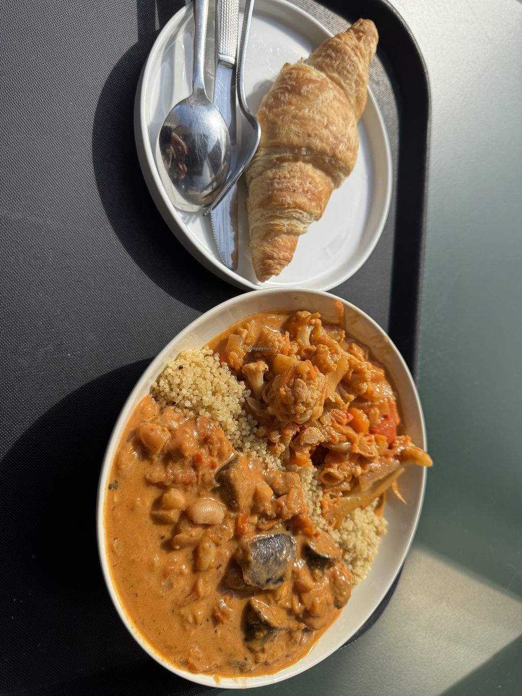 Best vegan croissant! With great coffee, ginger shot and chia bowl!