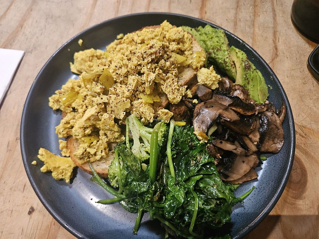 The tofu scramble was very tasty, and a very good price too! I ordered extra greens on the side. They have a separate vegan menu which is great.