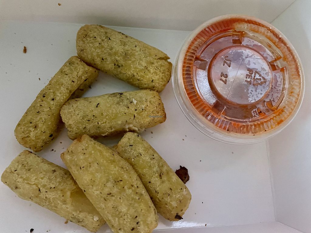 I decided to give Razzis a go given their expansive vegan menu. I hadn’t had a calzone for a while so I rolled with that and breadsticks. The contents of the calzone tasted good but the breading was just way too soft. I’m used to calzones being somewhat crispy.