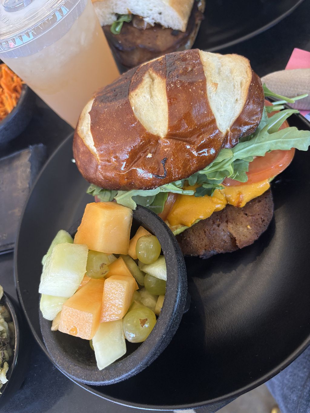 💚 All vegan 💚 I do not regularly eat imitation cheese so this was truly a special delight. We ordered the cheese board and the Tomato herb, Cheddar, and Brie cheese stood out. I also ordered the Capres salad and really enjoyed. Everything was phenomenal! I loved the outdoor atmosphere!