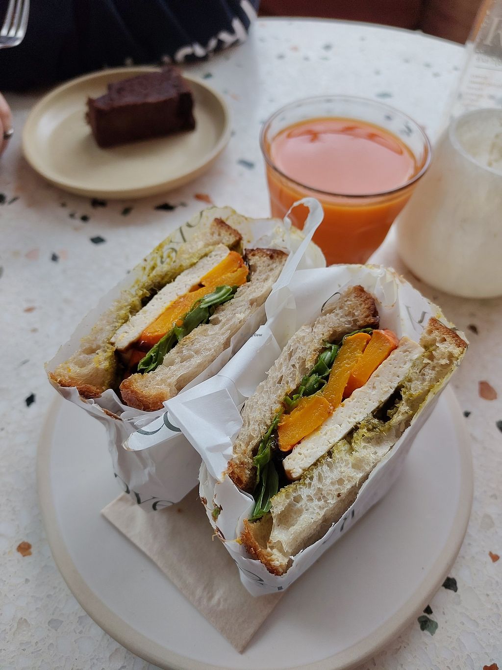 I ordered the pumpkin sandwich without the cheese, and the server offered to substitute with tofu or avocado. It turned out to be an incredibly tasty lunch!