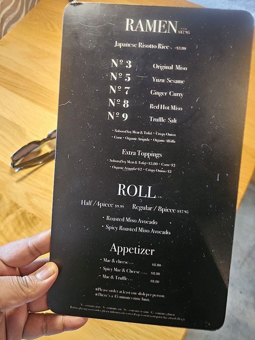 Four ramen types, three sushi-like appetizers and Mac and cheese. We