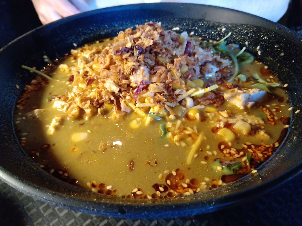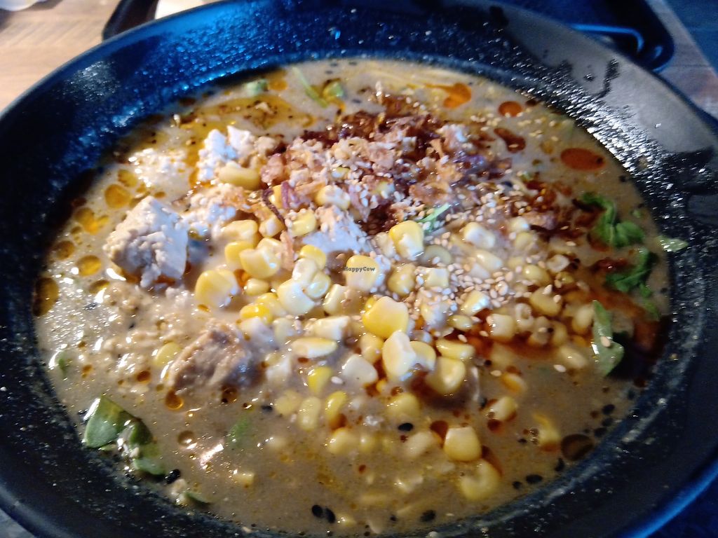 The restaurant is not fully vegan, but the menu is largely vegan. #3 garlic miso was very tasty! Would definitely go back. Quick service. Cozy atmosphere.