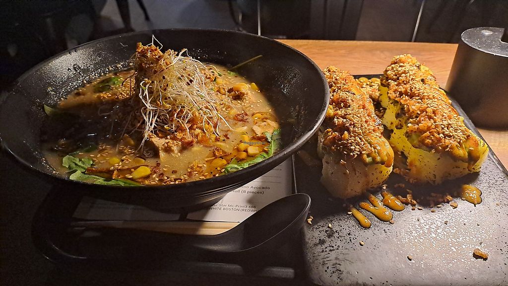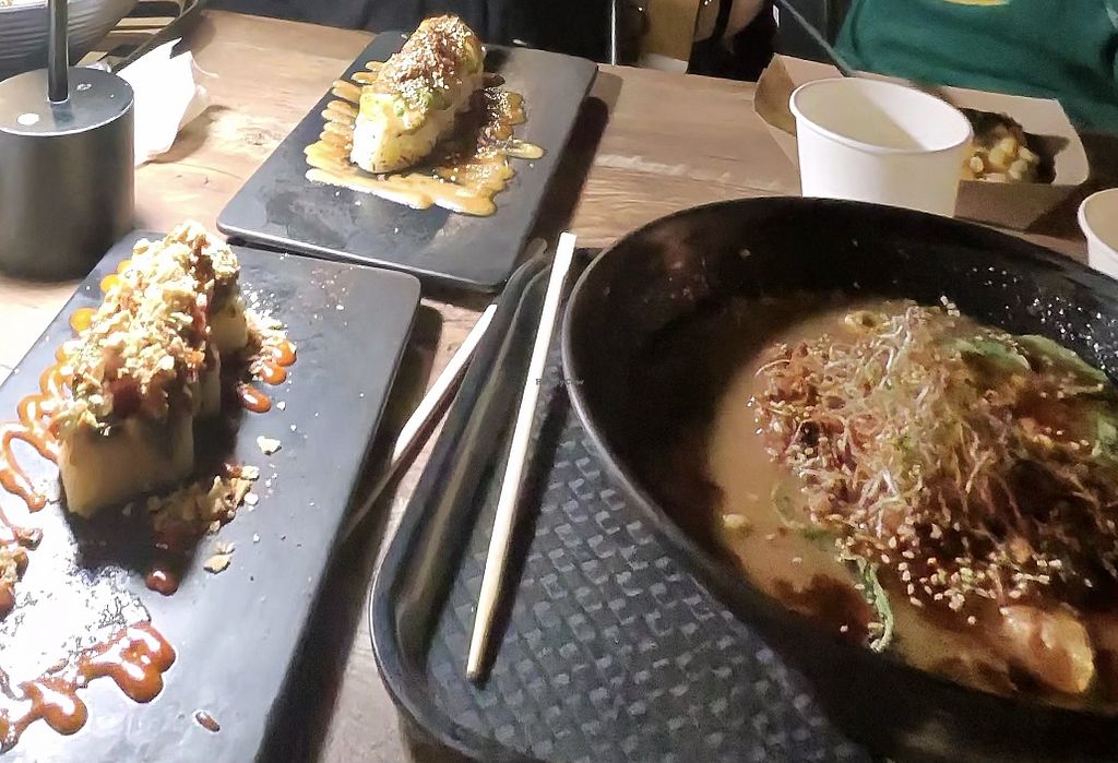 All vegan 🌱 Very tasty Ramen and some Sushi options. Cool location!