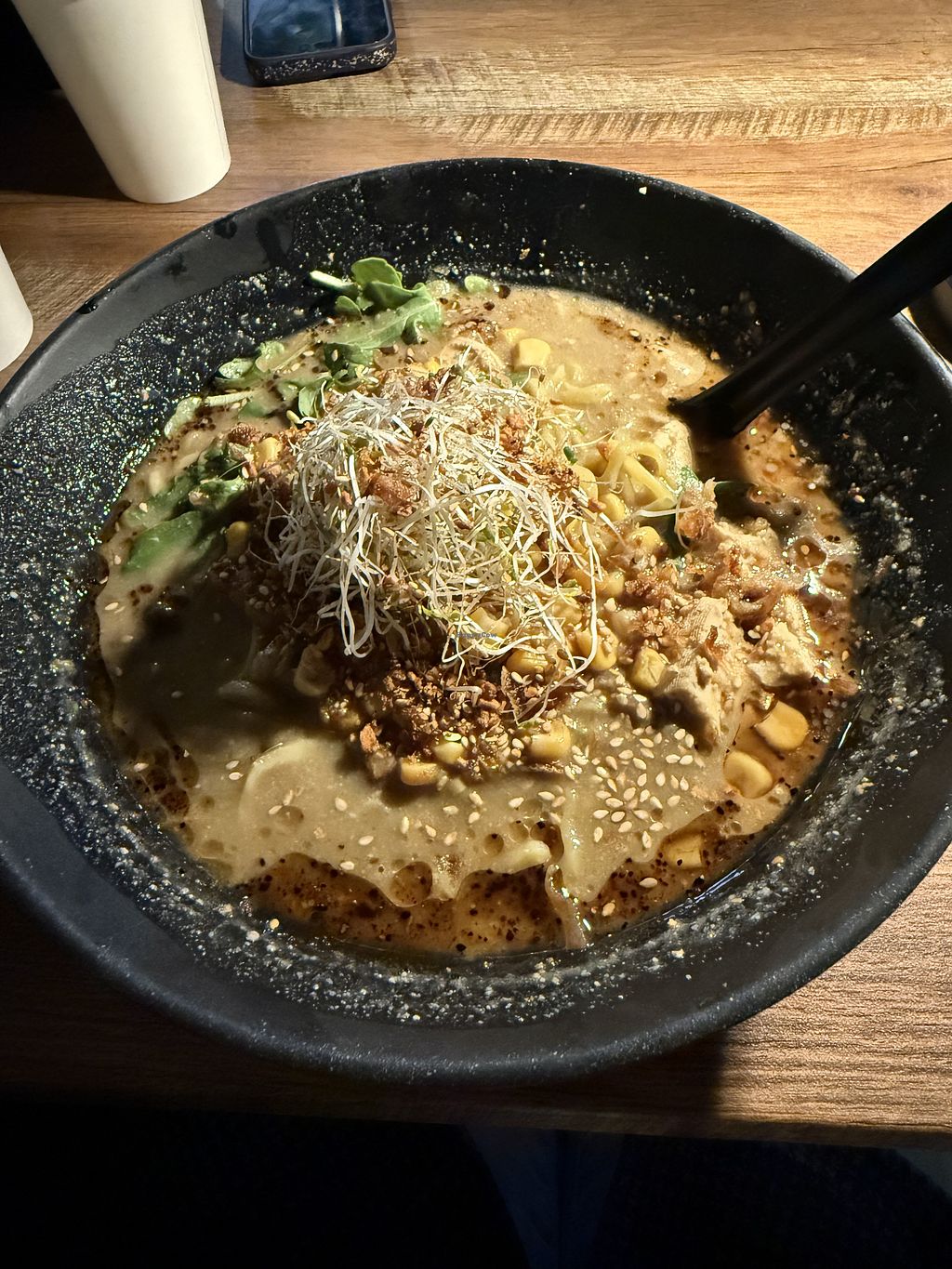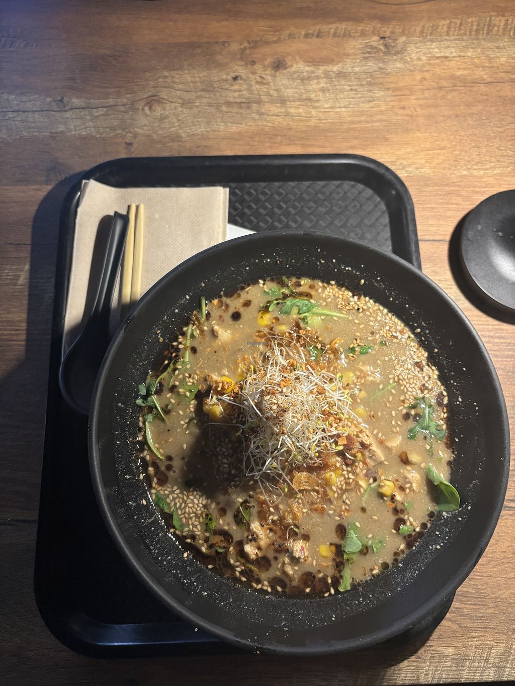 I had my eye on this place for a while, I’m happy that I finally was able to try it out. I got the No. 5 - Sesame yuzu (spicy) and an unsweetened green tea. With all due respect, as a person from Middle East, it was not spicy, perhaps it was American spicy… I did not feel anything at all in my mouth lol. It’s quite expensive but the portions were large.