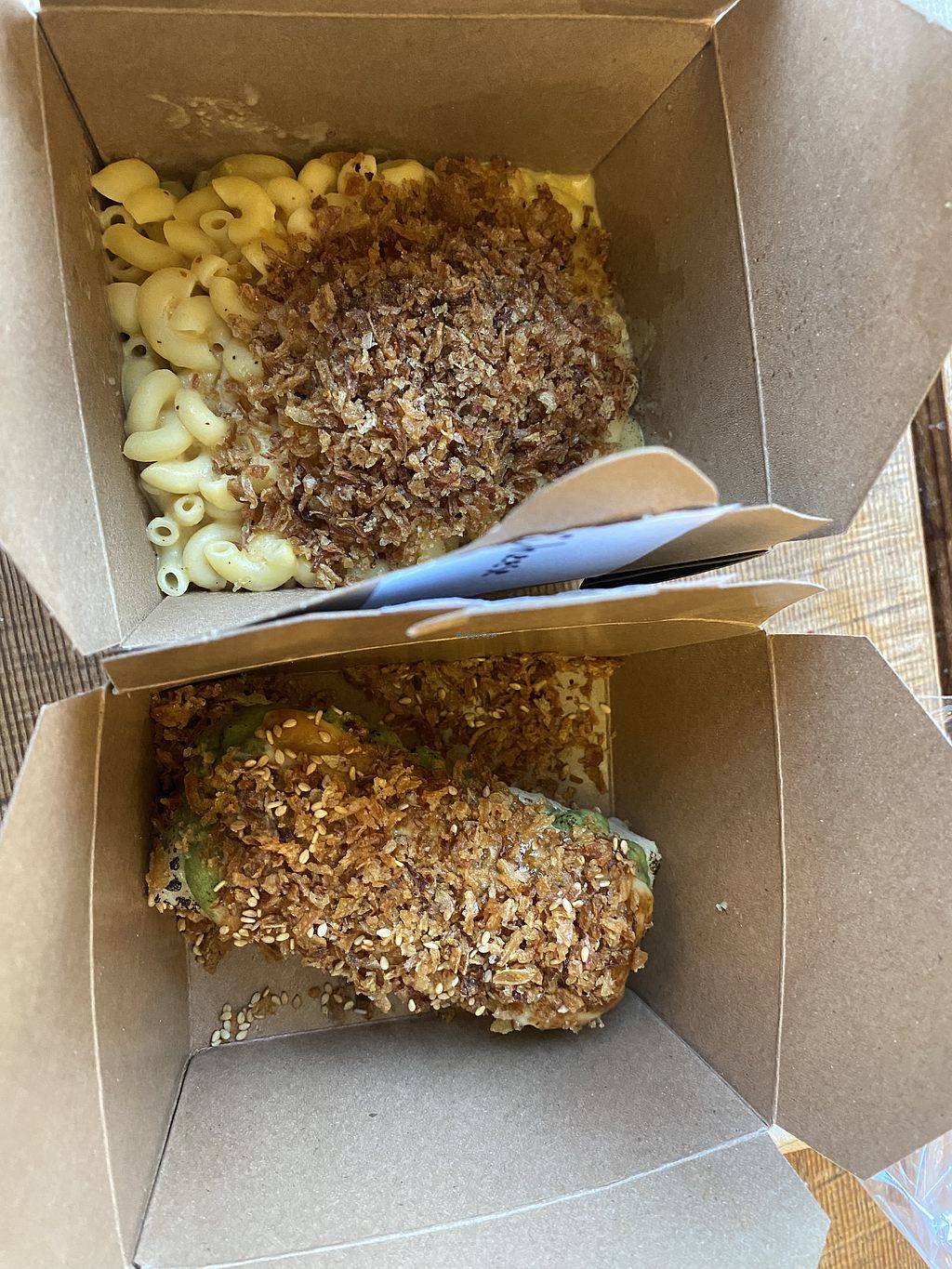 I got the Number 5 sesame ramen with added plant-based cheese and it was dissolved into the broth but the result was rich and tasty af. My homie got the number 9 truffle ramen and thoroughly enjoyed it, and we split the 4 piece chili taco sushi roll. Decadent, divine, and all packed well to-go. Not the easiest spot to get in and out of driving-wise for pickup as its on Newbury Street but public transit isn’t too far away. Definitely planning on taking the commuter rail in sometime just to go to this one spot.