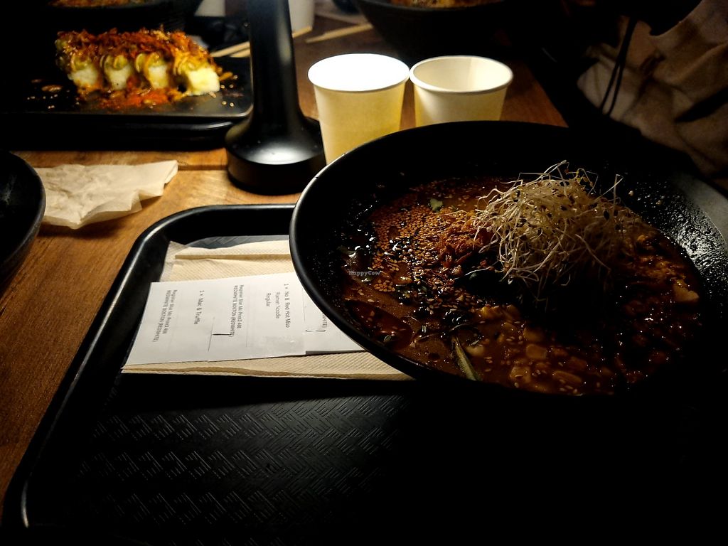 Got the yuzu sesame (spicy) and enjoyed it very much. I was already planning my next visit after a few bites. I went early on a Friday evening and didn’t have to wait for a table. Service was prompt and friendly. Ambiance was average to above average for a vegetarian Asian restaurant. Definitely recommend taking public transit and avoiding busy times if possible.
