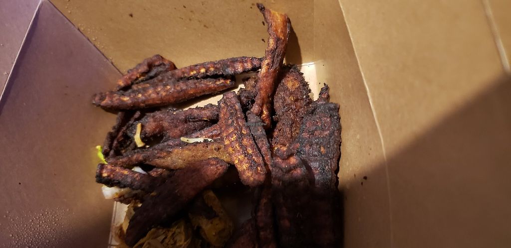 Hmm, I think the owner wanted to show the color of his dark soul by serving very burnt burro fries. Glad the Jackfruit burger was edible. Never coming back