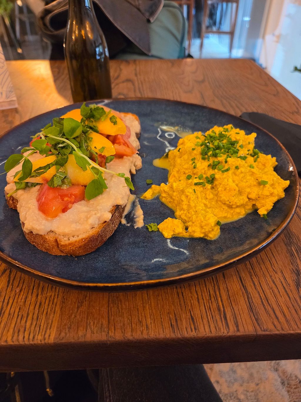 Cute coffee shop to start the morning at, I had a vegan breakfast - large bread with scrambled tofu, avocado and vegs.