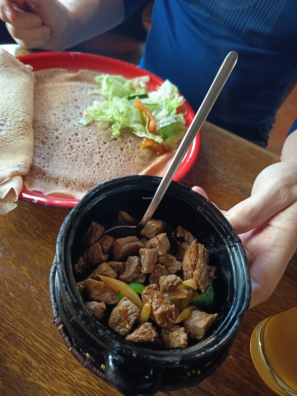 It should also be mentioned that you will have to eat with your hands, but this shouldn't be a problem. Just take a piece of Injera and wrap the food in it, put in in your mount and enjoy!