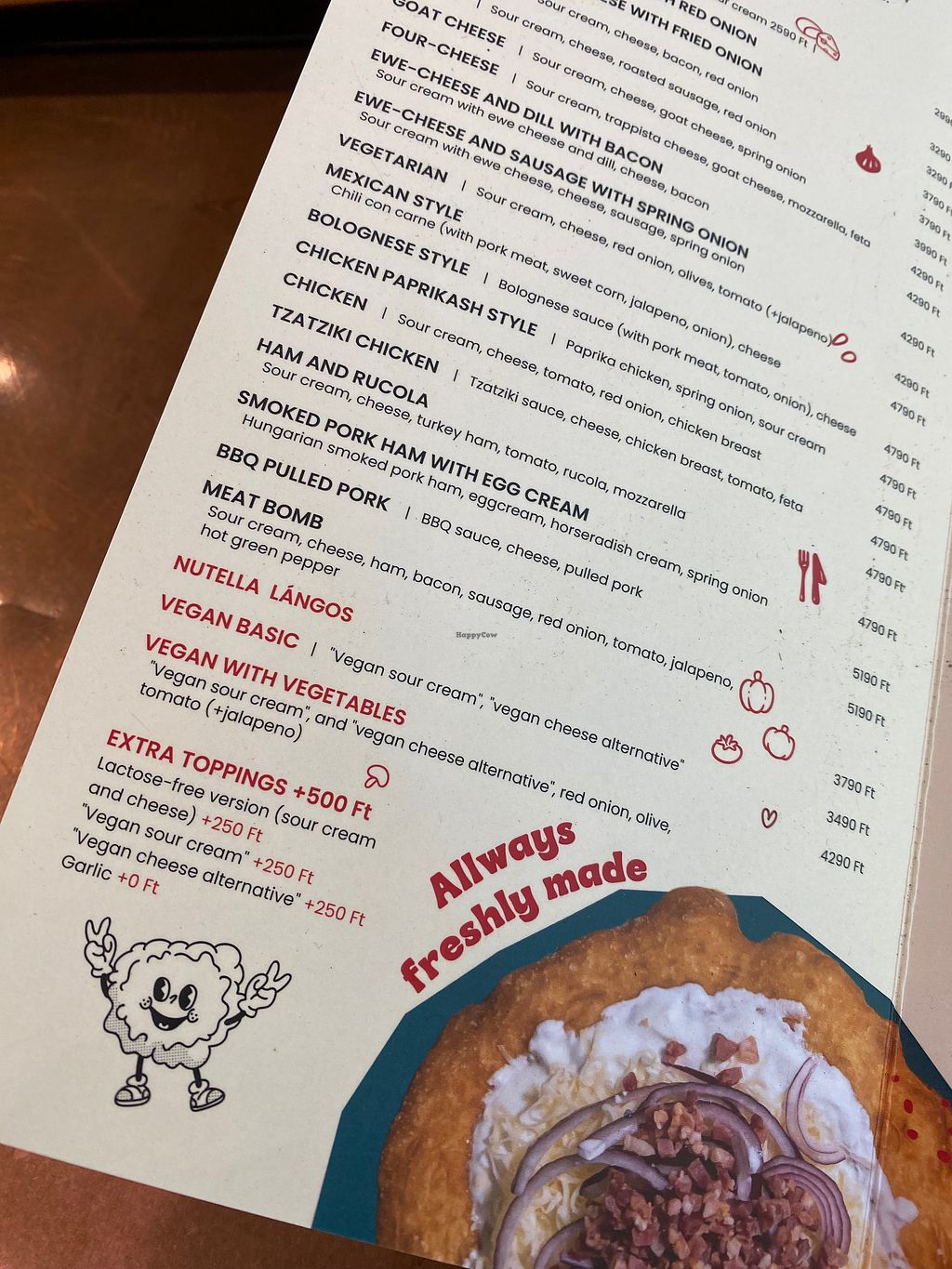 yummy place to try vegan lángos, though there are many options for that in the city. here they have 2 options for vegans- the regular with vegan cheese and sour cream, and that with vegetables. definitely recommend!