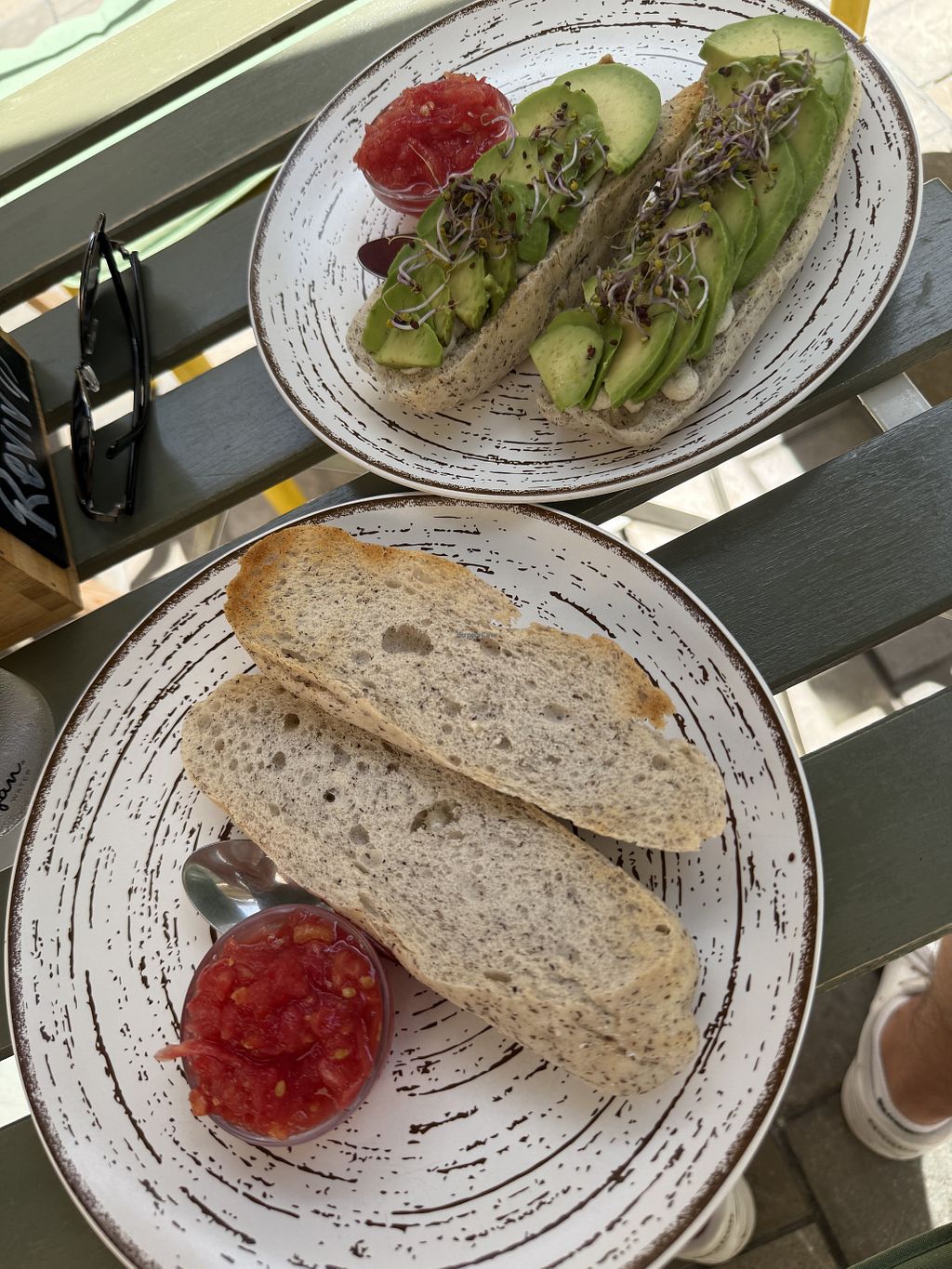 Pros: Avo/Tomato bread w cream cheese, Lovely oat milk, Great choices