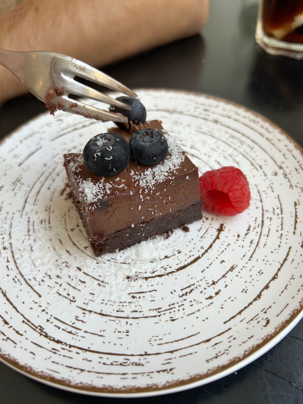 The food is just perfect - very healthy. I eat not only vegan but also avoid oils, salt and gluten - it was a pleasant surprise that here i have got what I like and need for my health. The browny was superb! The savoury chick pea pancaces was the right choice for me.