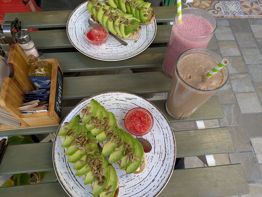 Visited for brunch whilst docked in Málaga on a cruise as we are both vegan.. We ordered an orange juice and beet apple and cucumber juice with a tostada with homemade vegan cream cheese and chickpea pancakes with sweet potato puree and avocado. The food was delicious, fresh and beautifully presented. Highly recommended and we would certainly revisit when back in Malaga next spring