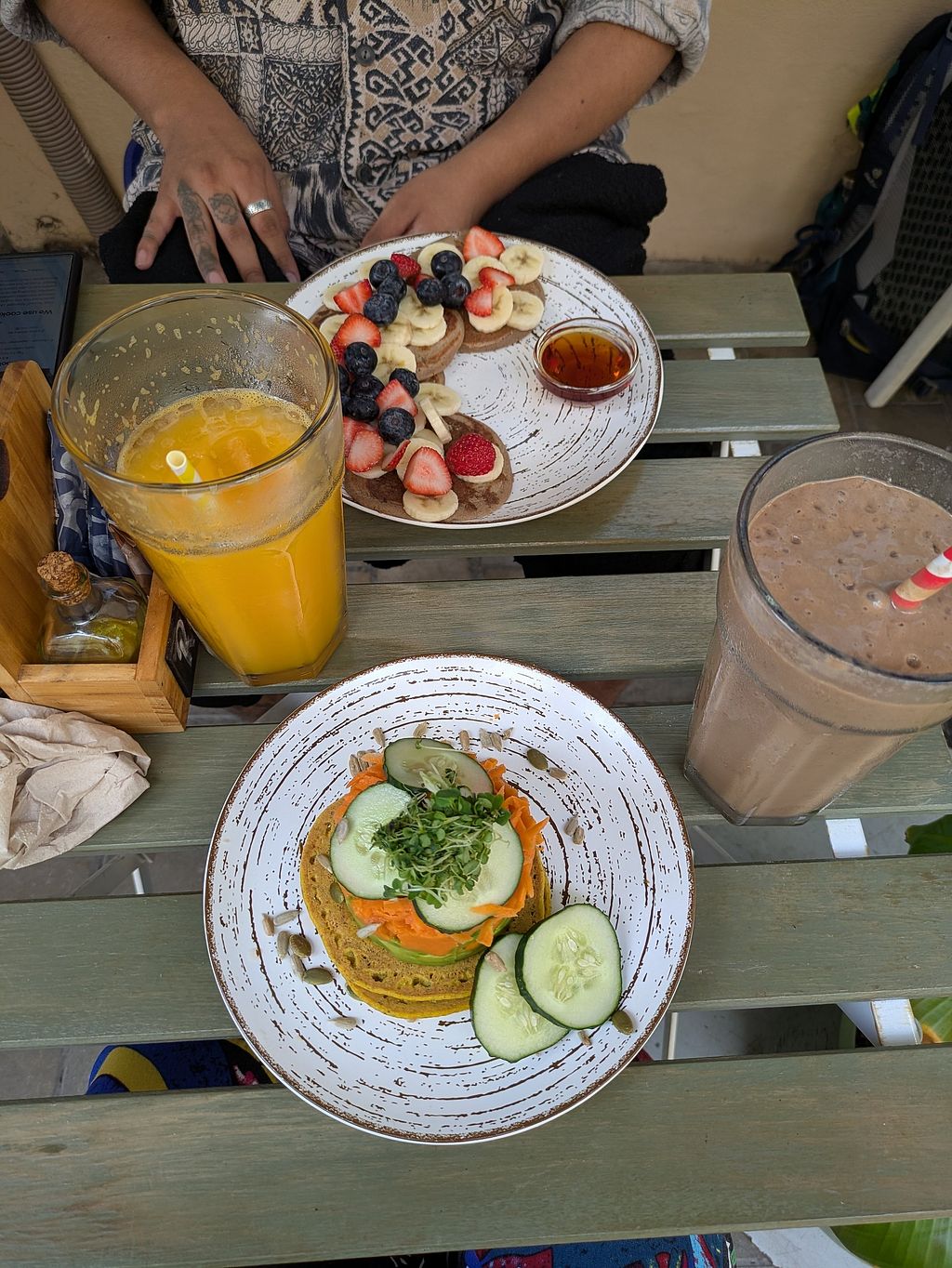 We had the berry bowl, chickpea pancakes, a vegetable juice and a coffee - and everything was delicious. For the coffee there are multiple plant based milk alternatives to choose from. The staff was helpful and friendly. Great place!