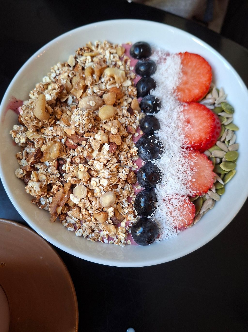 Arrived at opening. Filling and tasty nutty bowl and berry smoothie. Back for more tomorrow morning.