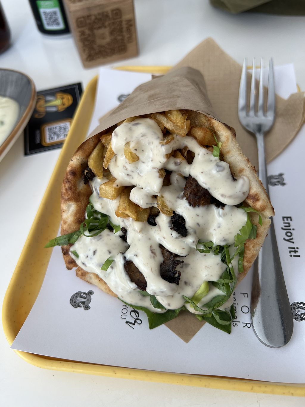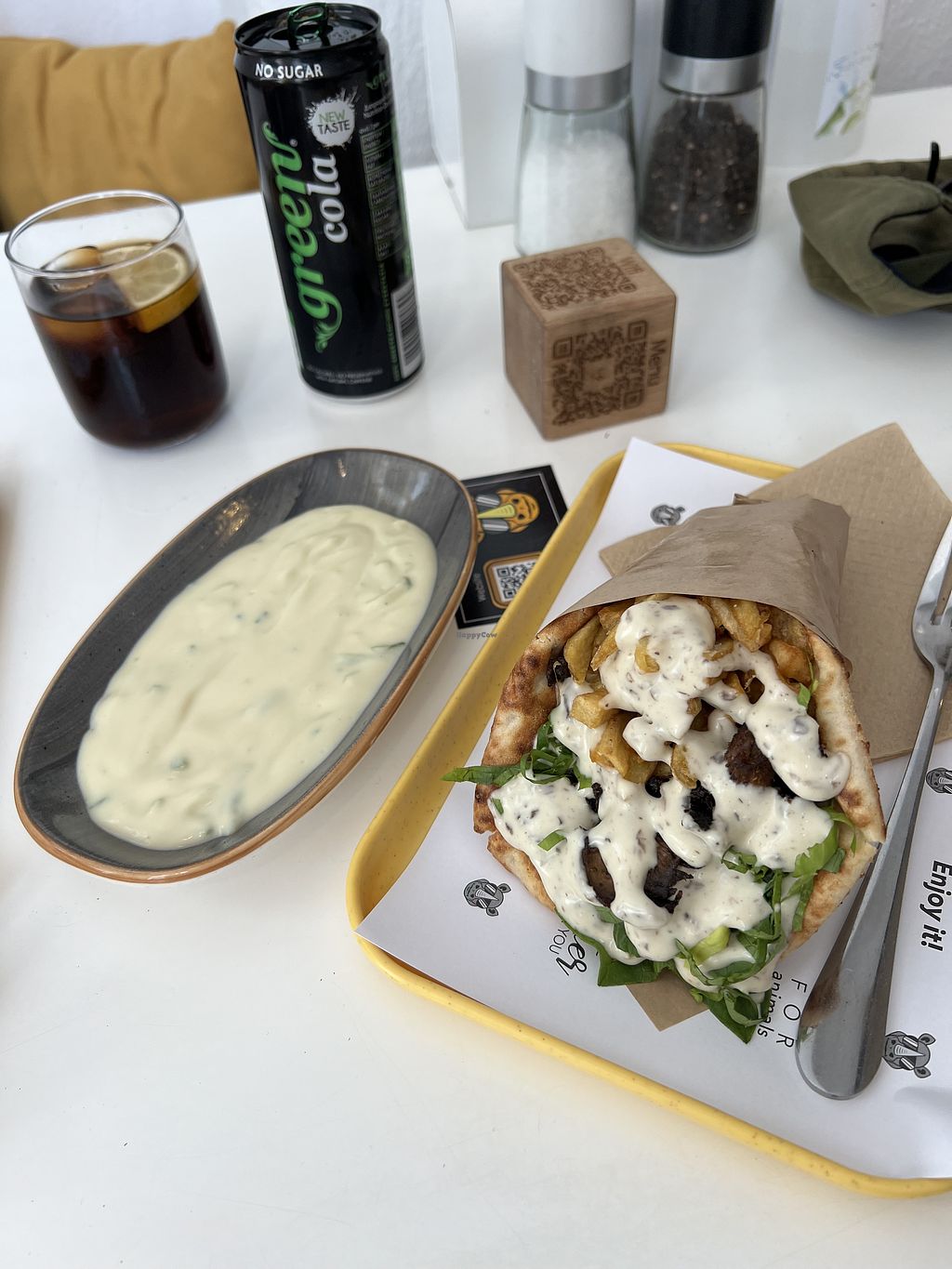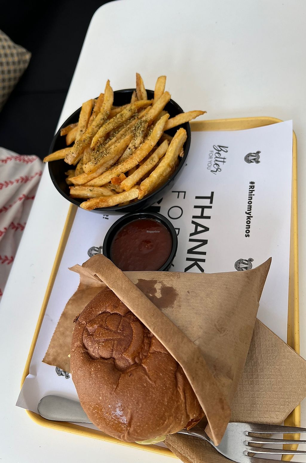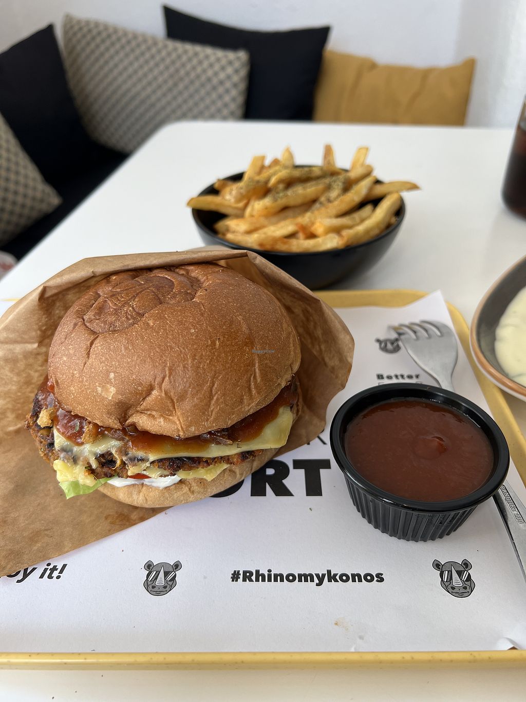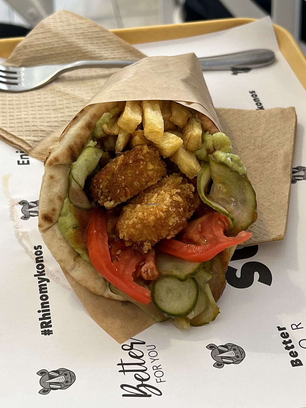 Bad rhino burger, oregano chips, chicken nuggets, chicken gyros