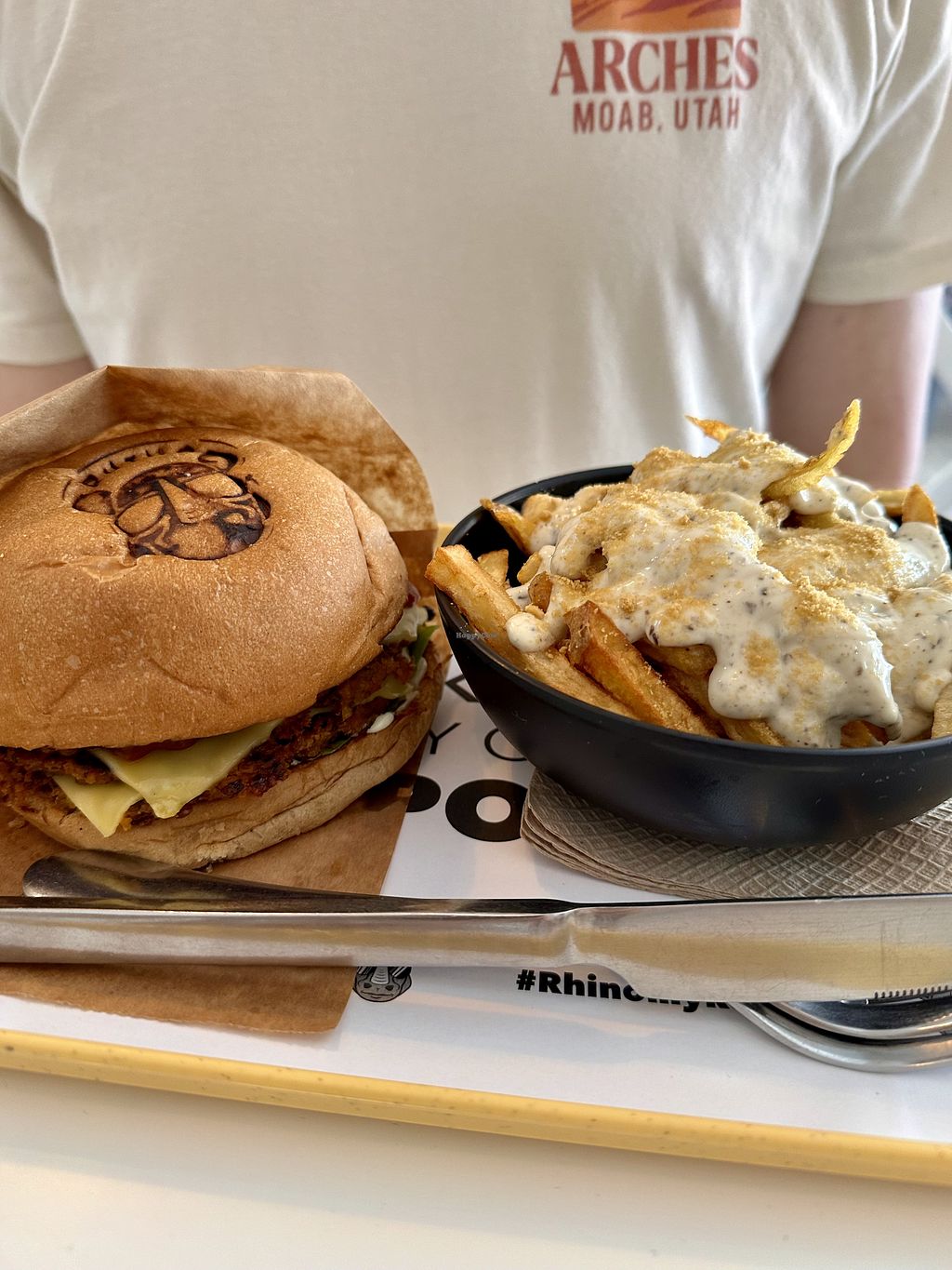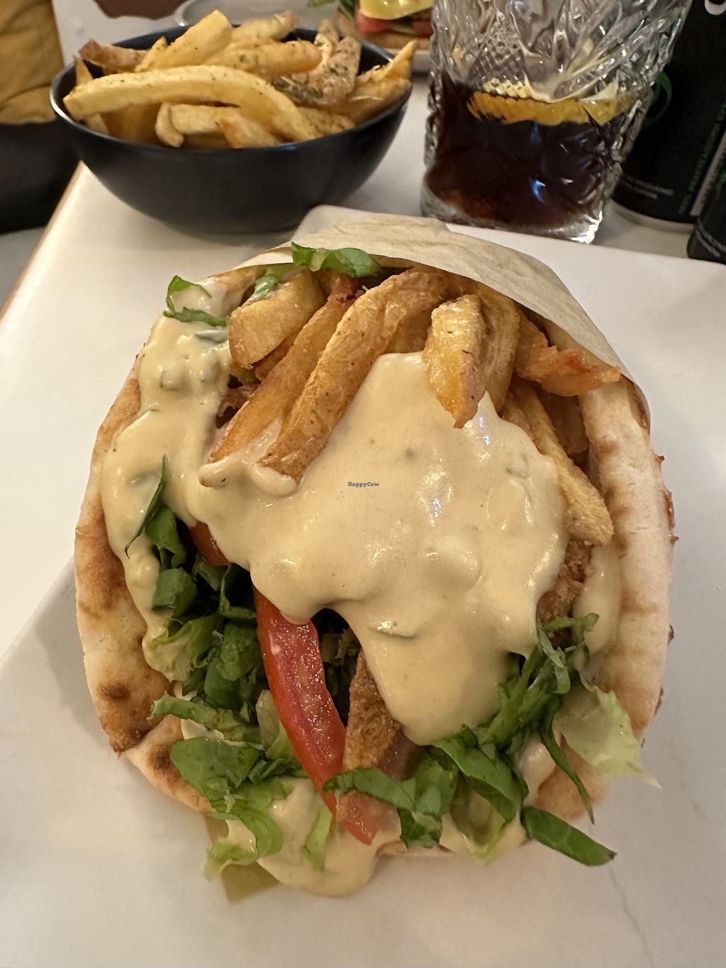 greek gyros, greek burger and mayo truffle friess
