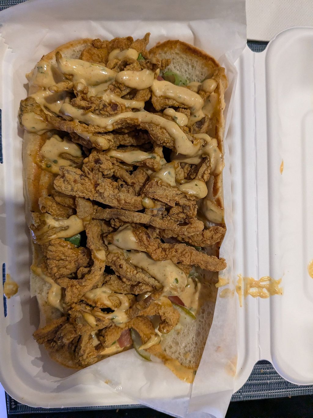 I got delivery so I can only comment on the taste of the food. I tried the Philly cheese steak and the Oyster Po Boy. Both had a satisfying umami flavor, but I particularly enjoyed the savory flavor of the cheese steak.