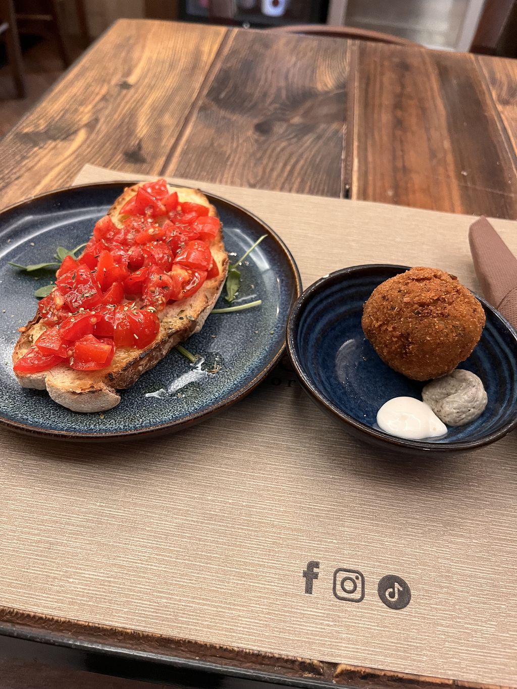 This was first first stop in Italy, and I’m glad it was my first night dinner. The food, of course, was very delicious. I had to get the carbonara, and it was my favorite pasta I had gotten in Italy. The bruschetta and croquette were delicious, as well. My only regret is not going back a second time😒and also not getting a dessert, but I was way too full