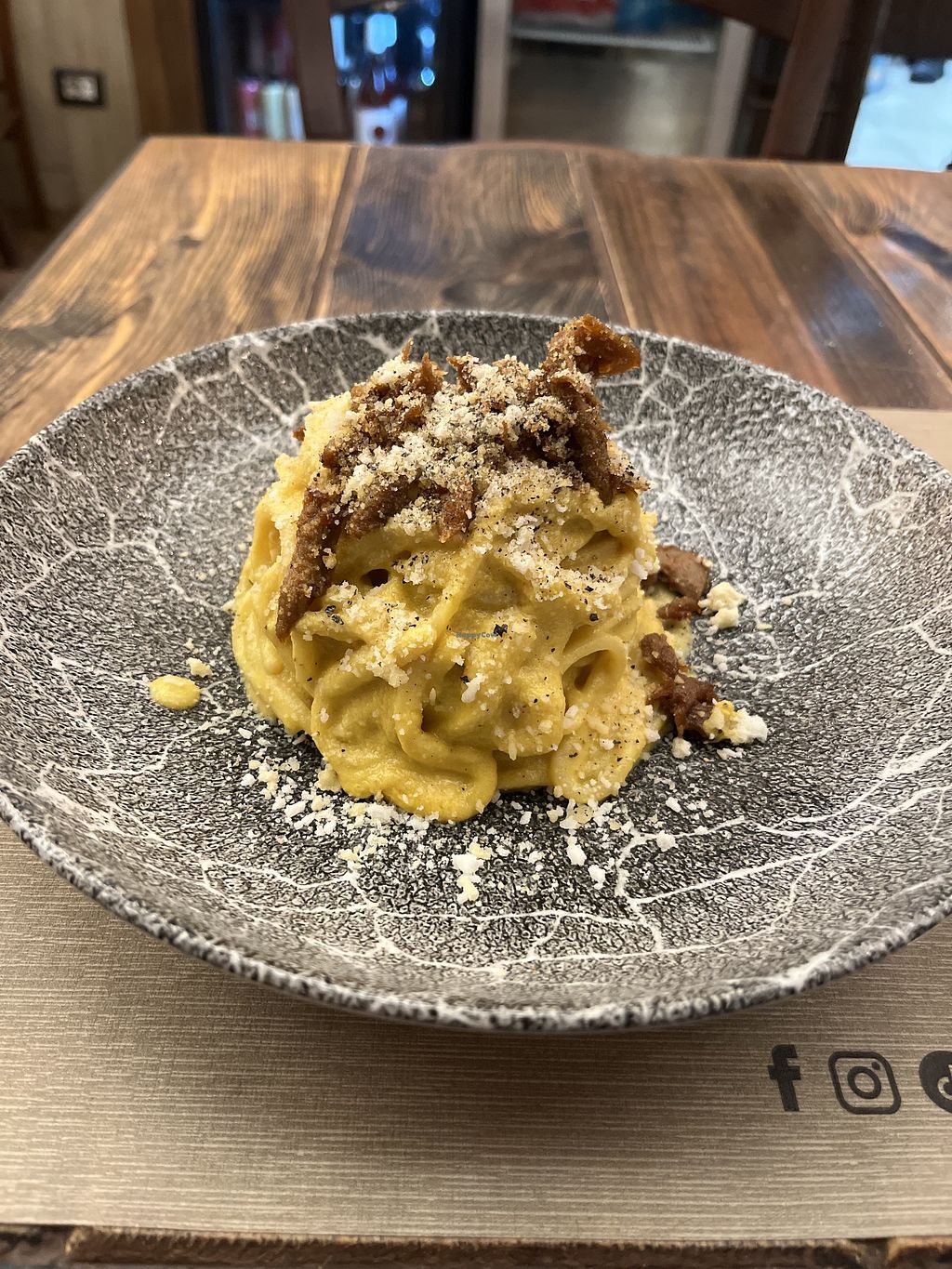We tried a lot of starters and for the main dishes we went for the carbonara and gricia. Everything was super good and tasty!! A very good restaurant with cruelty free alternatives to classical roman dishes