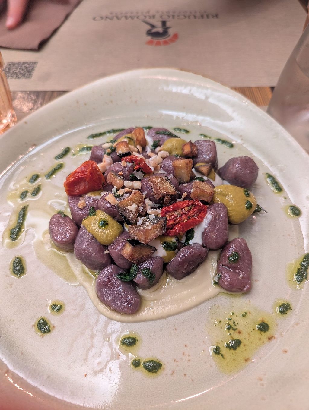 Great vegan versions of traditional Italian food. The carbonara was super good and we had the 3D printed meat which was mind-blowing (a bit too close to the real thing). Also had some starters and dessert. Not my favourite one, but a very solid and tasty option in Rome.