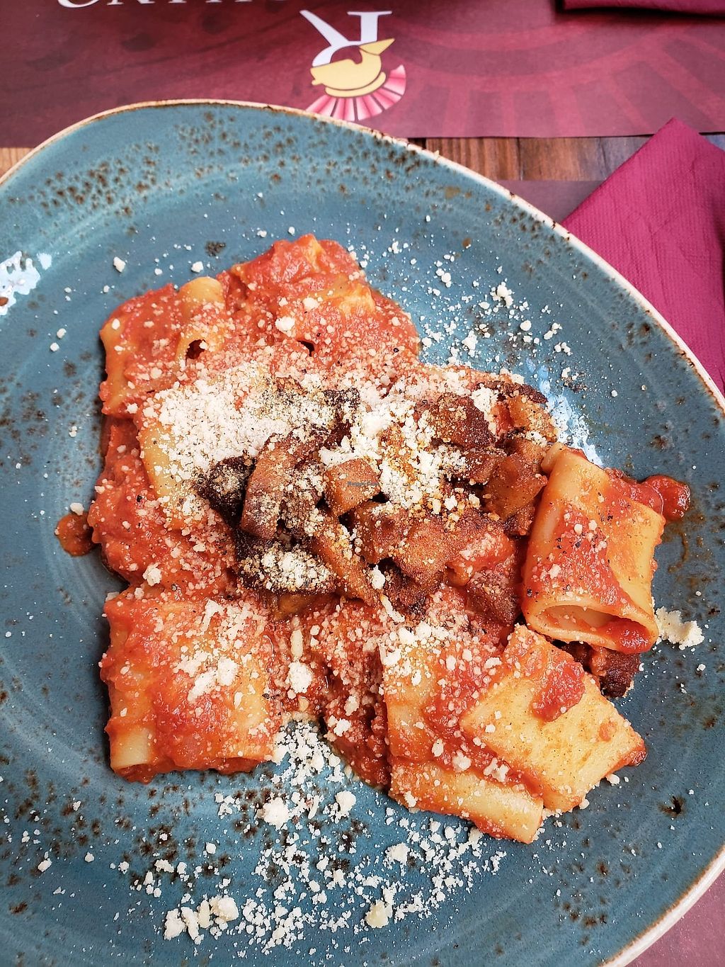 tagliata de seitan and spaghetti carbonara