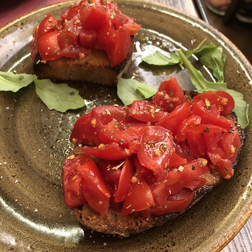 Bruschetta hummus e pachino and bruschetta al pomodoro