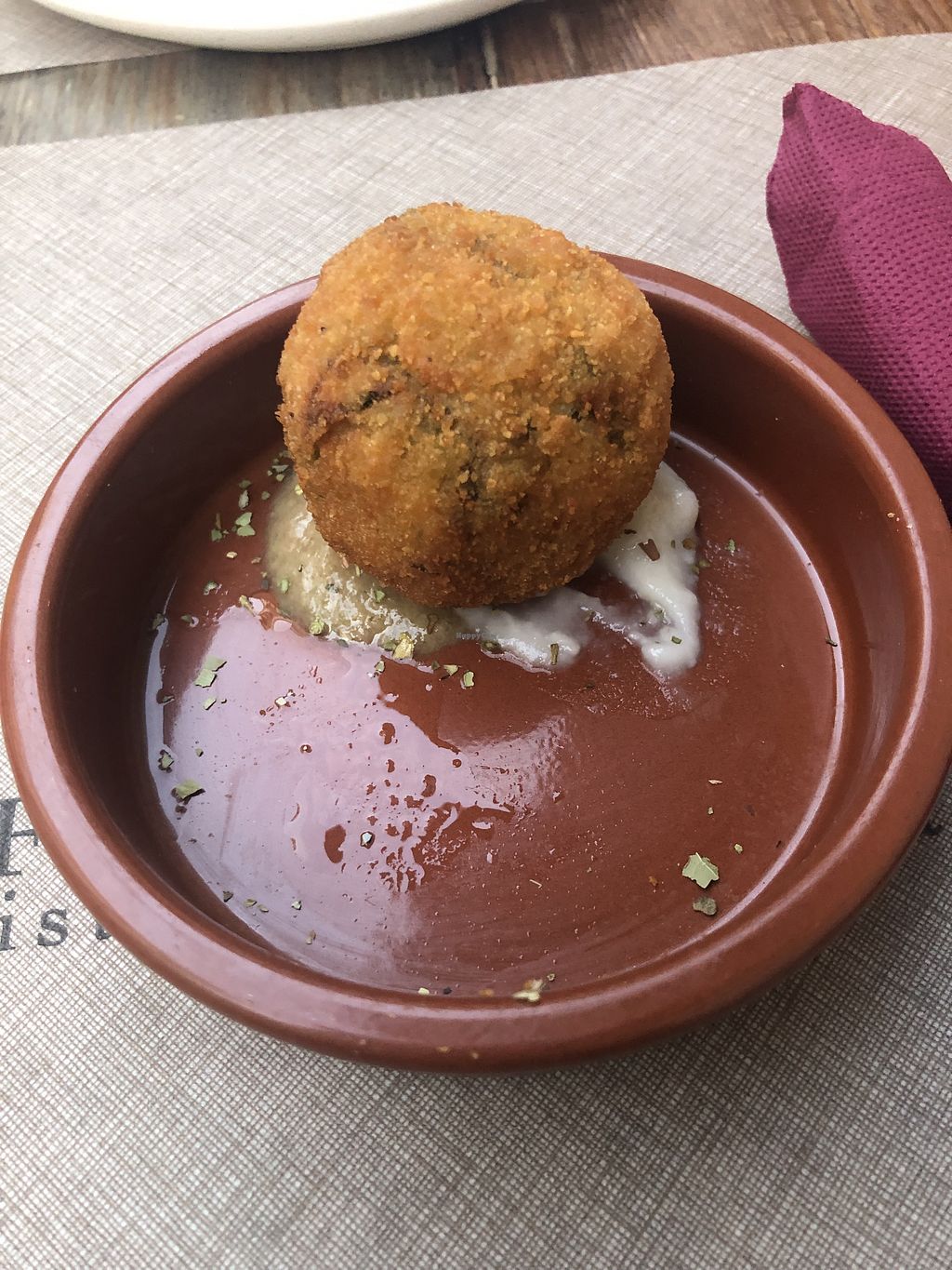 Extensive menu. Need reservations. Got a pasta, potato croquette, and “steak” and potatoes. Best steak I’ve ever had!!! Wow!! Pasta was also incredible and the croquetas wow! 11/10