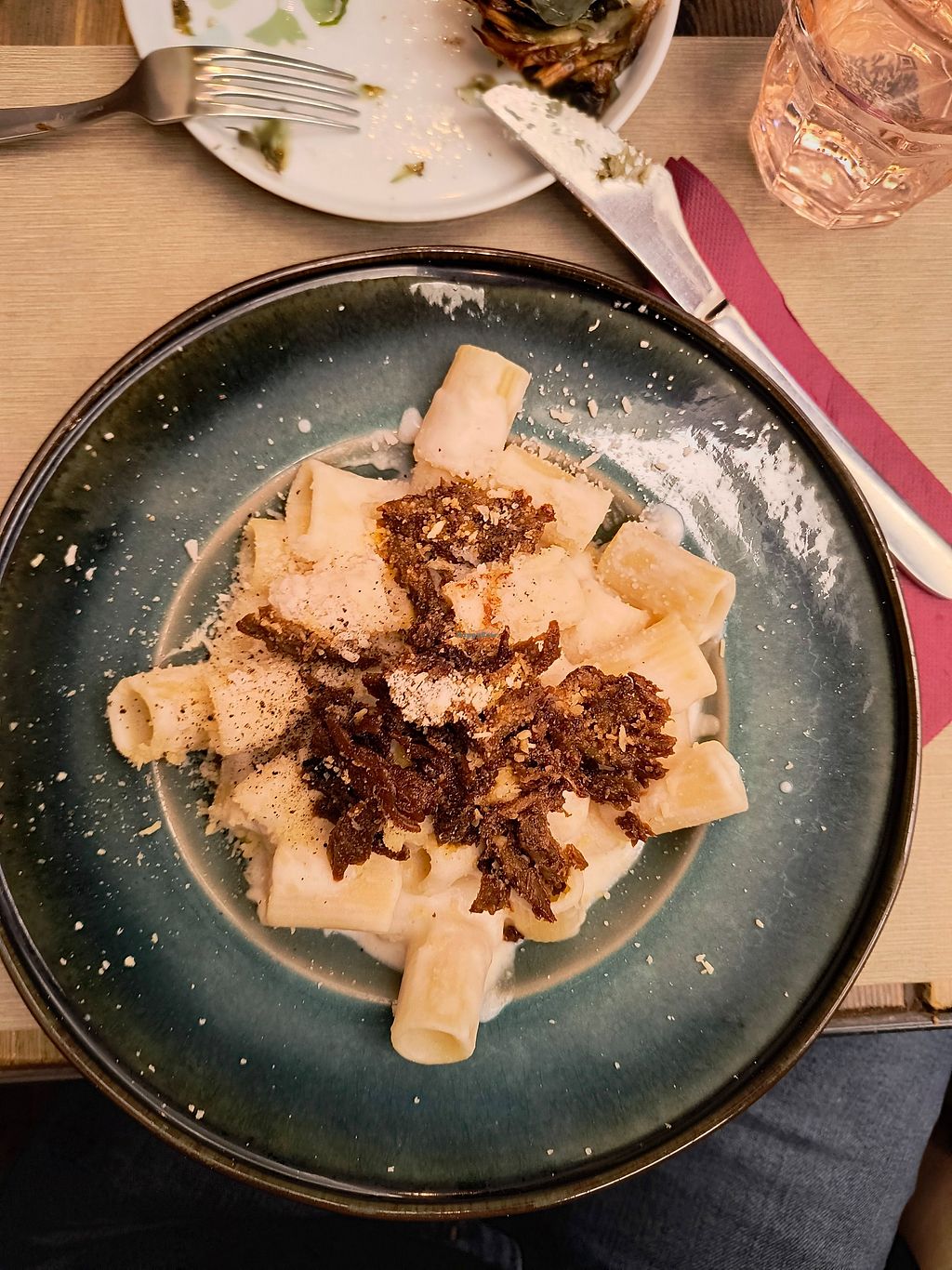 Das Rifugio Romano tritt laut den Angaben auf ihrer Website seit 2023 als vollständig veganes Restaurant auf. Die Karte ist recht umfangreich, die Auswahl fällt dadurch nicht leicht, wir empfehlen deshalb mehrere Besuche. Die vegane Carbonara war sehr gut und auch die Kürbislasagne. Das Tiramisu ist die Krönung des ganzen.
