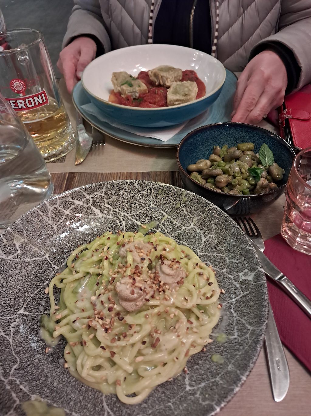 We ordered Arancini balls to start, which were crunchy and delicious. Then I had the tonnarello pasta with asparagus, hazelnuts, and lemon sauce, which was unique, fresh, and flavoursome. We also had a side of green beans which was tangy and protein packed after days of pizza! The star of the show was definitely the chocolate pistachio cake, which I am still thinking about today as it was that good. All reasonably priced, tasty and served by friendly staff. 100% go if you get the chance!