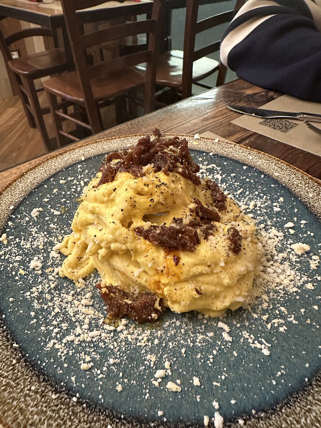 Honestly it was an an interesting experience as we have taken a number of meals since we felt adventurous. Some of the dishes were extraordinary (fx. Moscardini snack or scacciatora di seitan, they were just amazing!), but some were very disappointing and we sent them back (caccio e peppe was unedible and starchy… and the snitzel was so-so). So in the end I have difficulties evaluating the experience. But hey - if you want amazing dinner, I advise you get scacciatora of seitan and get yourself a panna cotta dessert with caramel sauce. These were very good😄