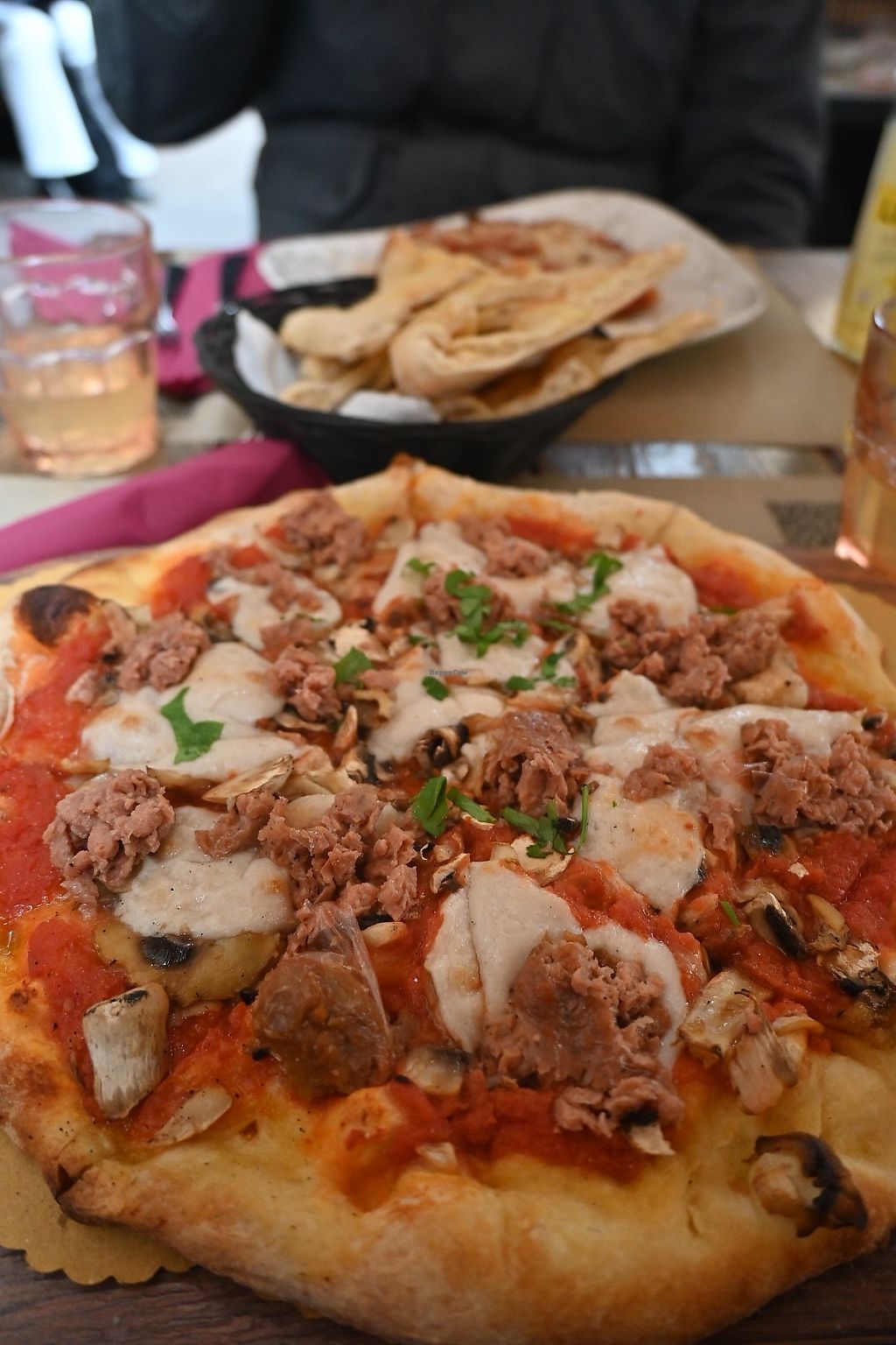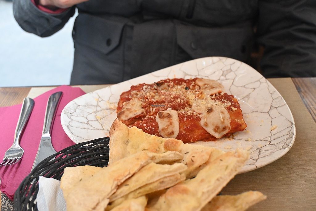 A trusted vegan friend recommended this place to me and I’m glad I tried it. It didn’t blow me away, but it was good. We got a pizza along side “Cannelloni Vegan” with rosemary and olive oil bread. The bread was great and actually one of my favorite parts of the meal. I would give this place a second try!