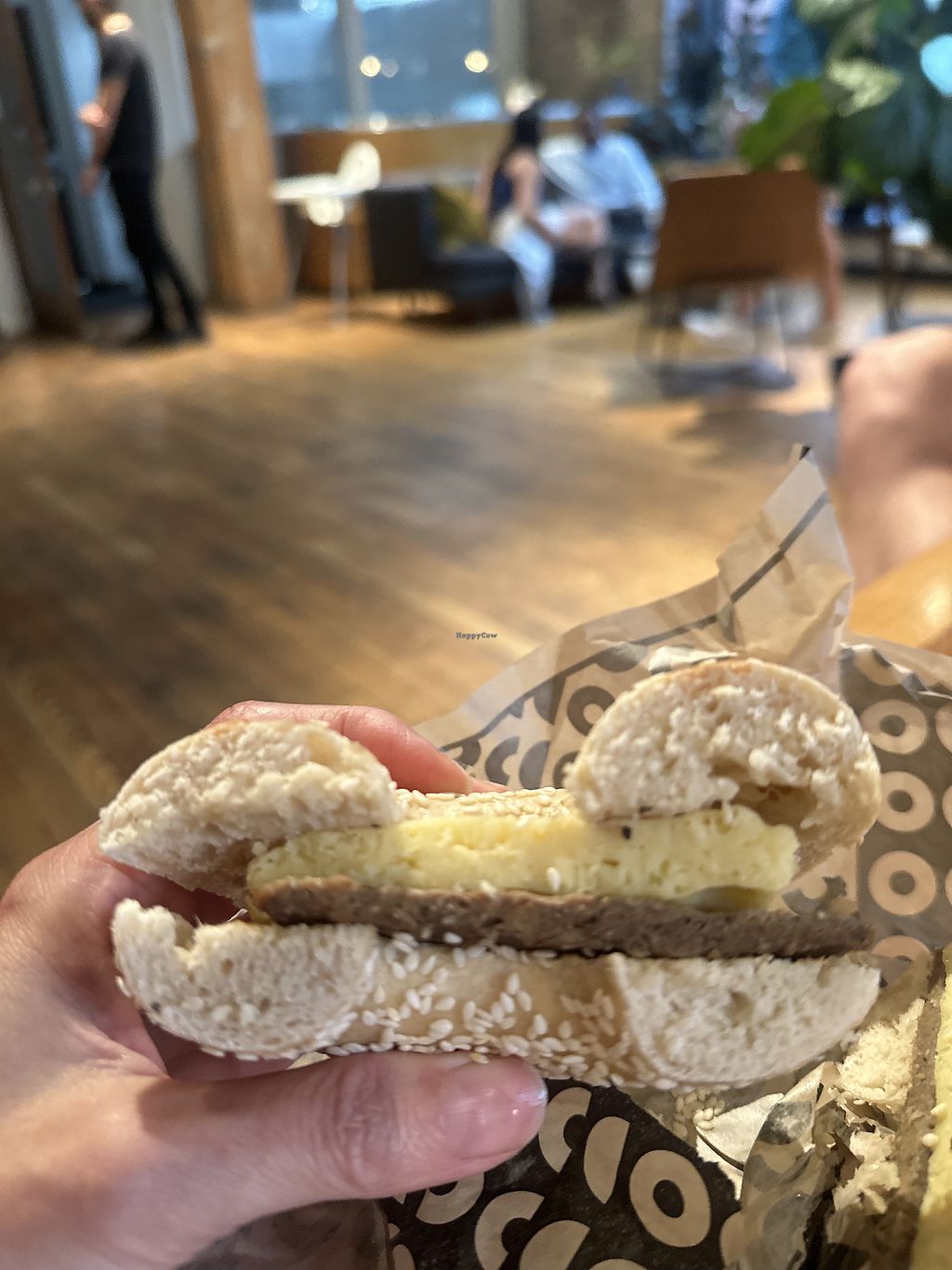 got two and had halves: vegan bagel w sausage n just egg, and the vegan rosemary cheese on rosemary bagel. loved the rosemary cream cheese but the rest was average. busy place, friendly servers, & cute atmosphere