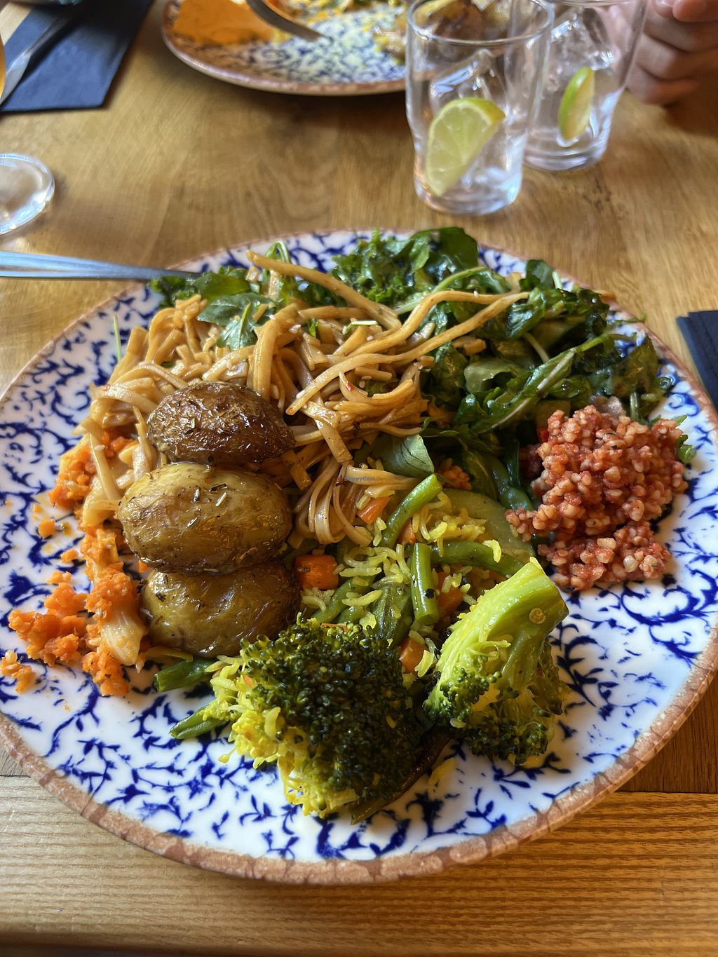 I liked that this was a restaurant that I could eat at with my Omni family. I thought the buffet was fine. Many vegan options but not all vegan. Most plates were marked as to if they were vegan and any that weren’t I asked the server. The buffet is expensive, as Copenhagen is and buffets typically are. Buffet is mostly salads and pastas so not a ton of great protein options.
