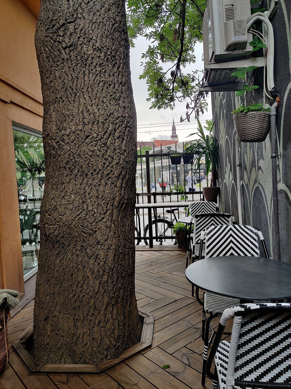 Savory croissant with sausage, cheese sauce, and a lot of sprouts