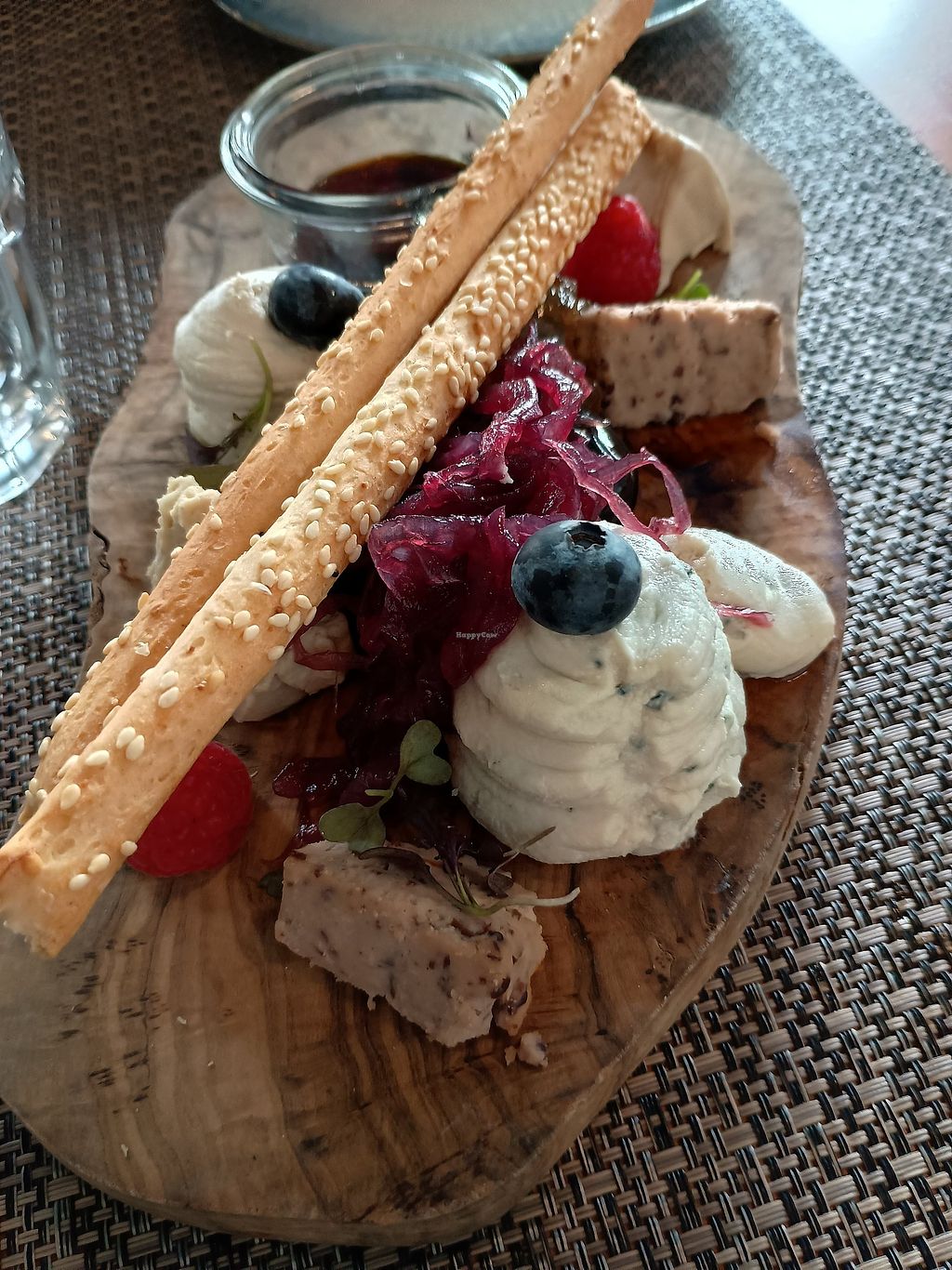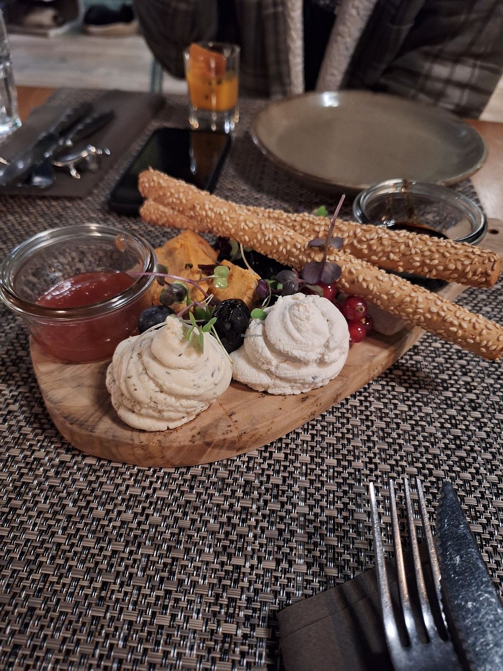 Read moreNoi abbiamo preso la selezione di formaggi veg a base di frutta secca (spaziale il cremoso in stile erborinato) con le salsine e la cipolla rossa caramellata e, come secondo, spiedini di soia e funghi shitake su insalata di bambù e del tempeh di arachidi mezè (uno spezzatino) di zucca, arachidi e patate, e Chips di banana. Tutto saporito e di qualità.