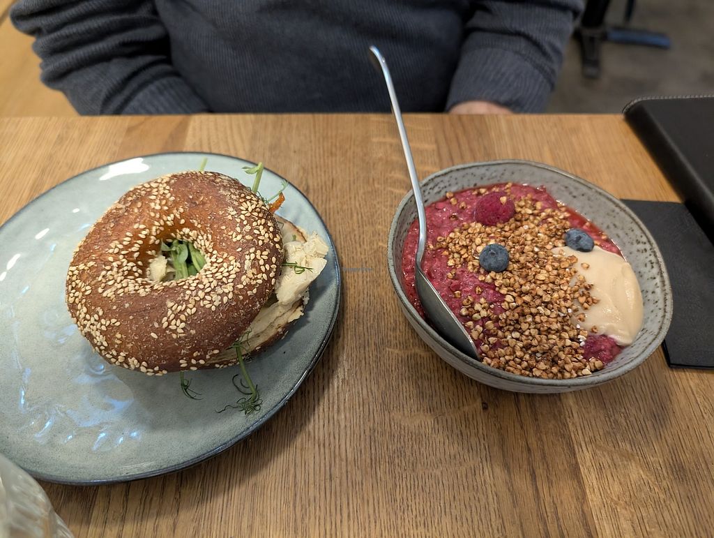 This is mainly a yoga studio, as seen from the many people coming from their yoga exercise to enjoy some healthy vegan snacks afterwards. But you can visit it just to have coffee, bagel or something sweet. I enjoyed the relaxed atmosphere that invites you to stay longer than in a busier place. Coffee is good and the bagels too. The location on a side street might be challenging though, you probably won't frequent the place unless you live nearby.