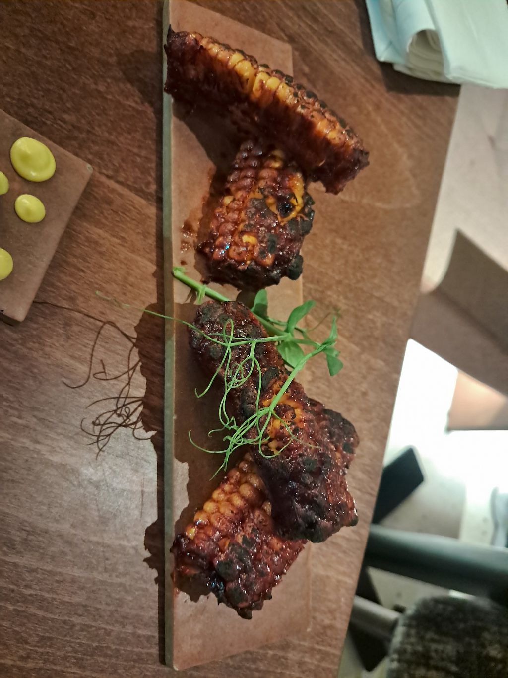 We had the corn ribs, which I'd highly recommend as a starter. I had the wellington, which was also pretty good, but could have had a bit more sauce (I like to drown my food in sauce). But I regretted my choice when I tasted the "scallops" & okra my girlfriend ordered, so many different flavors in one dish, it truly was a culinary journey. Drinks were also good! 20€ for a main dish also doesn't seem expensive for a "$$$" rating, especially considering some other places charge ~15€ for a toast.