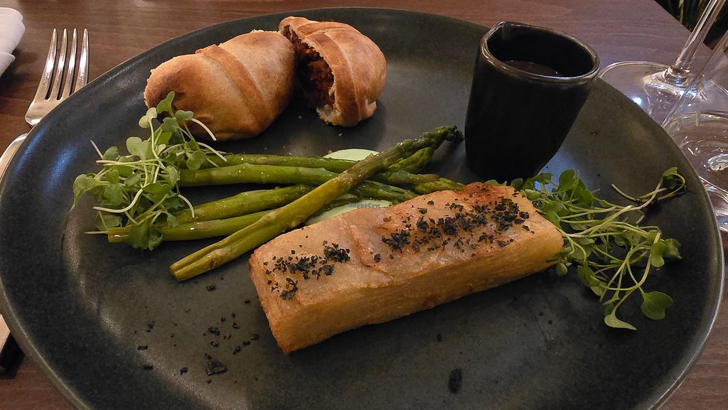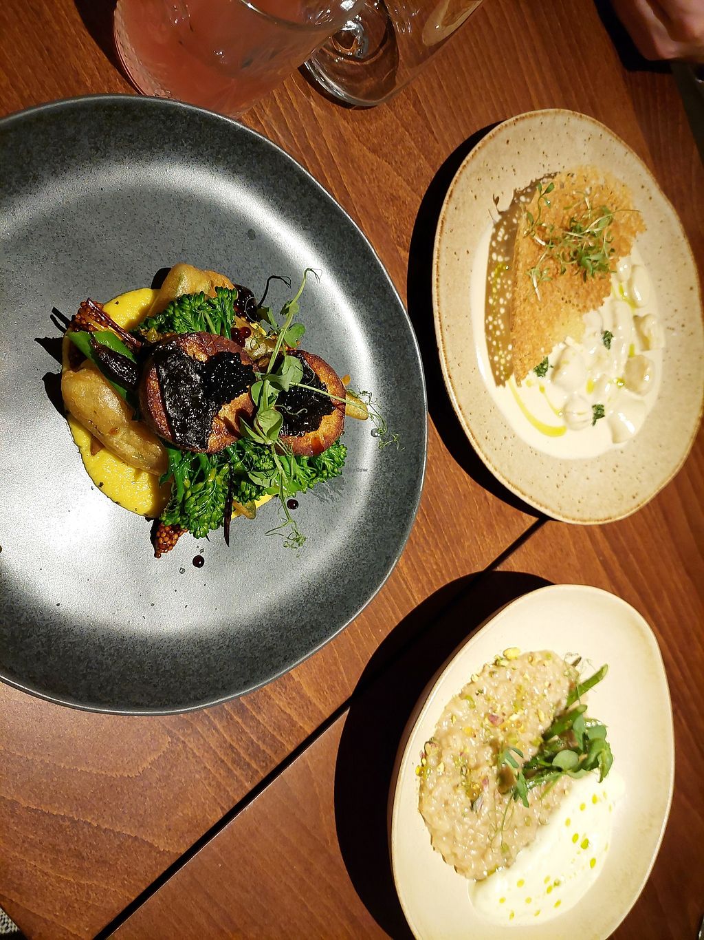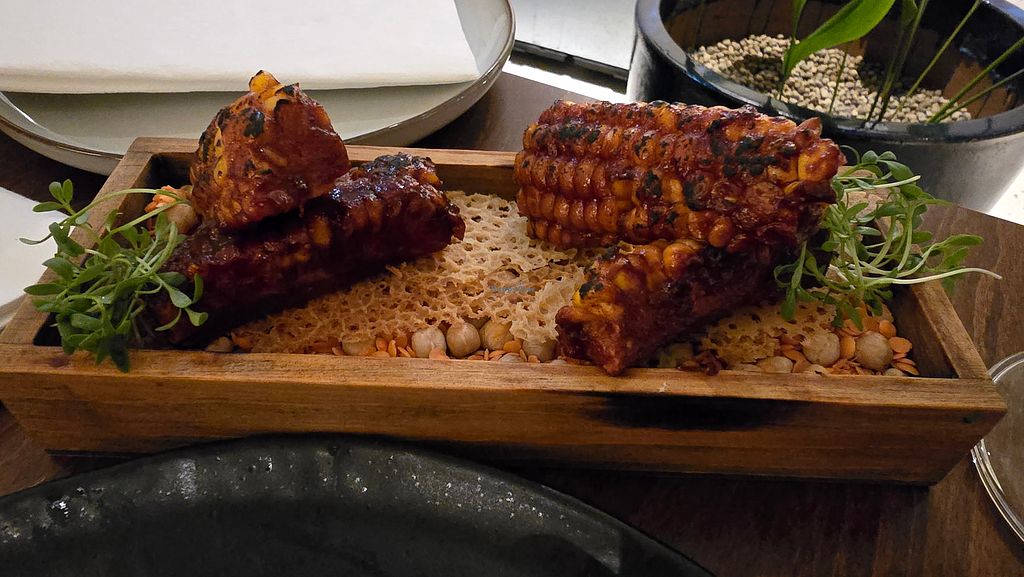 All vegan menu with options such as a seitan Wellington, a cashew cream gnocchi and asparagus and lime risotto. All very tasty but for a vegan only restaurant there were limited main course options. Having said that, everything tasted good and we had no room left for dessert. Varied drink menu as well. The Happy Cow app (and their menu) suggested they also had a pizza menu - this no longer appears to be the case. When asked for the pizza menu, the waitress said the main menu was all they had which was disappointing as I was excited to try their pizza. Don’t waste your money on the corn ribs - they were basically a third of an ear of corn with barbecue flavor.