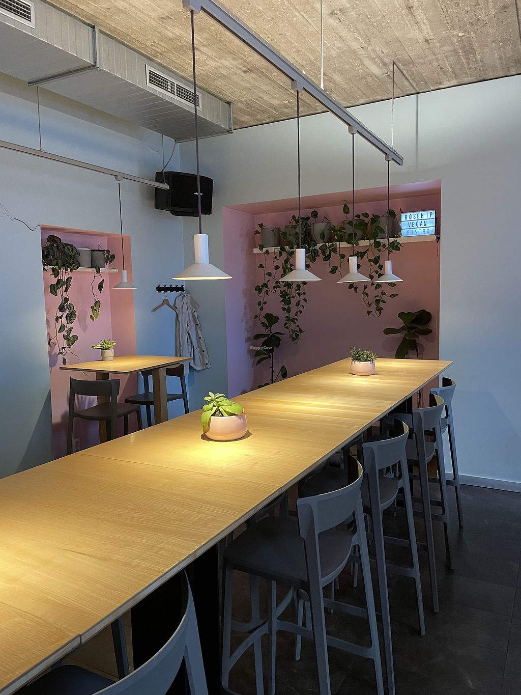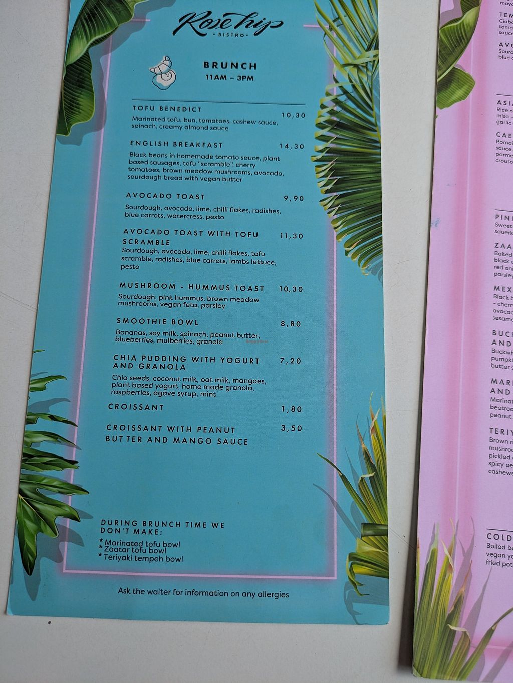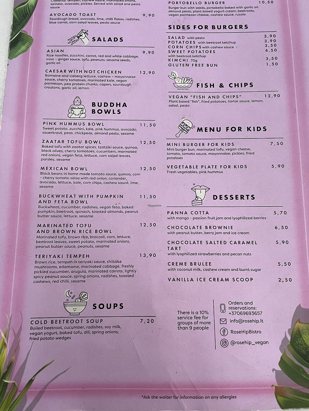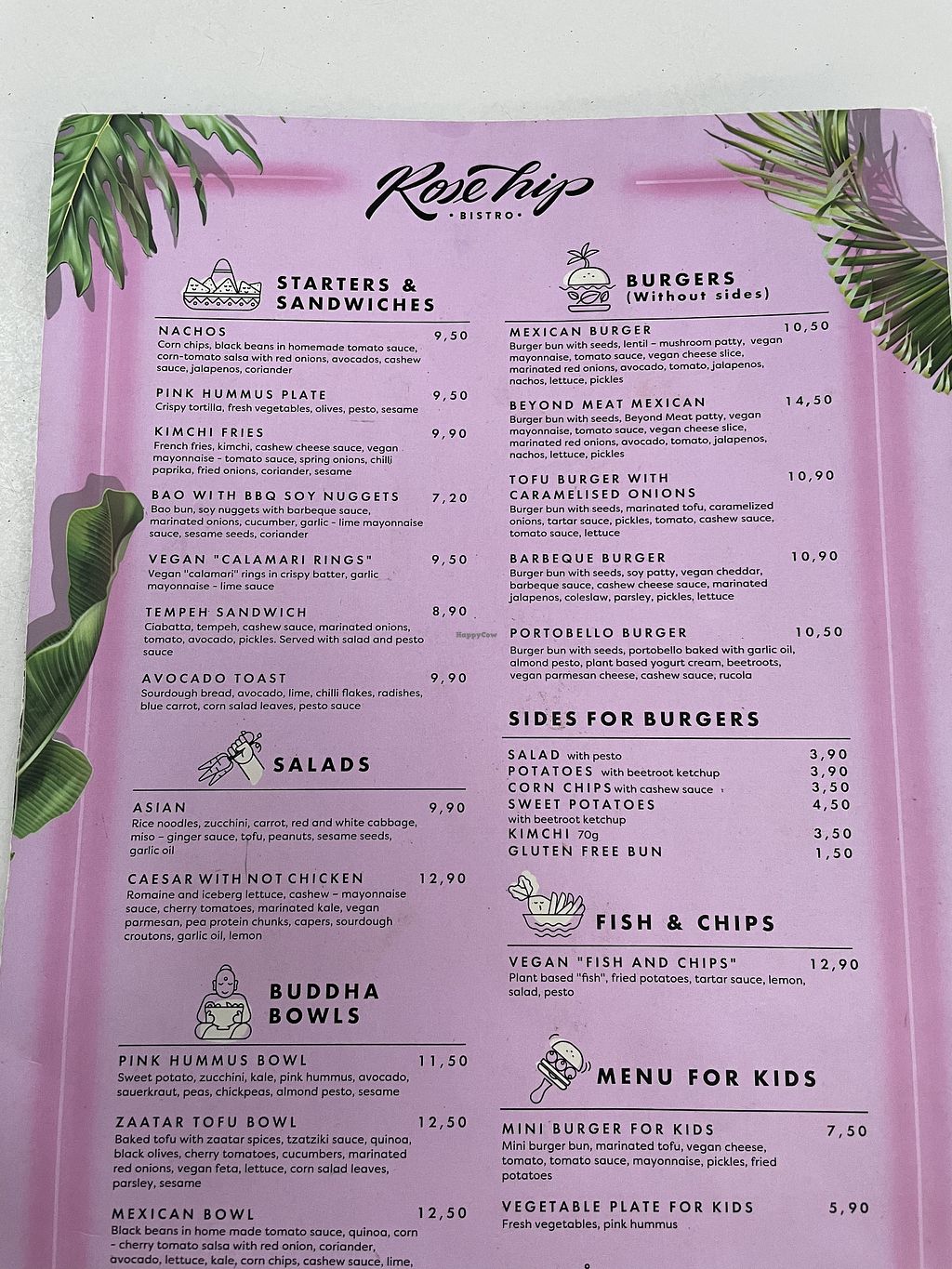 We visited Rosehip with high expectations 6/2025 but left disappointed. The food was ok, the only really tasty dish was the "calamari rings" as a starter. I ate tofu bowl which had literally one full chopped onion (way too much, yuk) and my hubby ate a burger. He was left hungry so that dish wasn't even big enough. It took quite a while to get the food and after finishing our dishes we waited for waiters to come to ask if we want desert. Nothing happened in 15 minutes so we went to ask for the menus. Then we waited another 15 minutes but no staff came to the room so we left and paid in the cashier. There were four staff people standing and talking together but no one was interested in serving customers?! Maybe this is the "famous Baltic customer service" we laugh about in Finland but I would have expected better service in vegan restaurant.