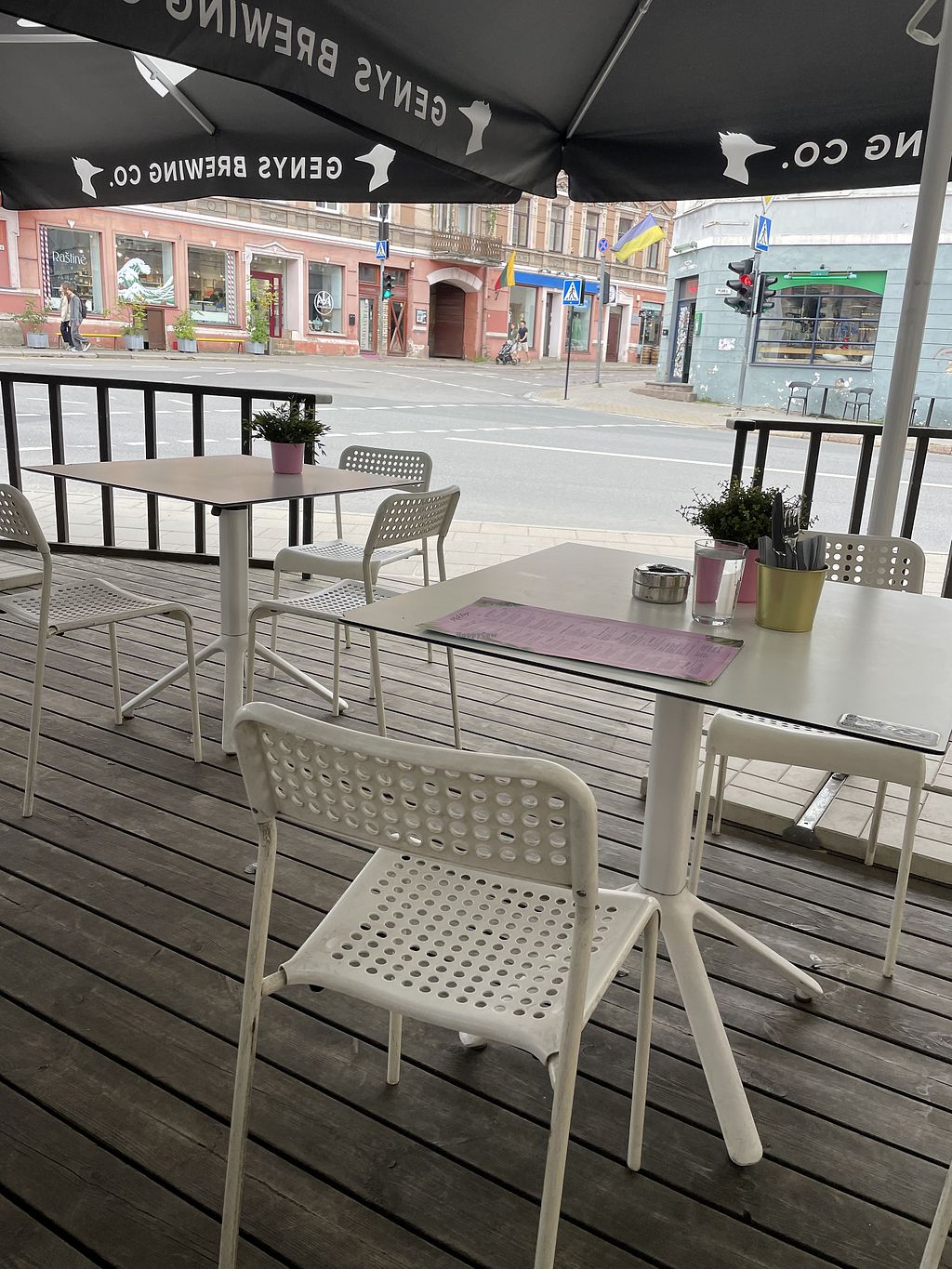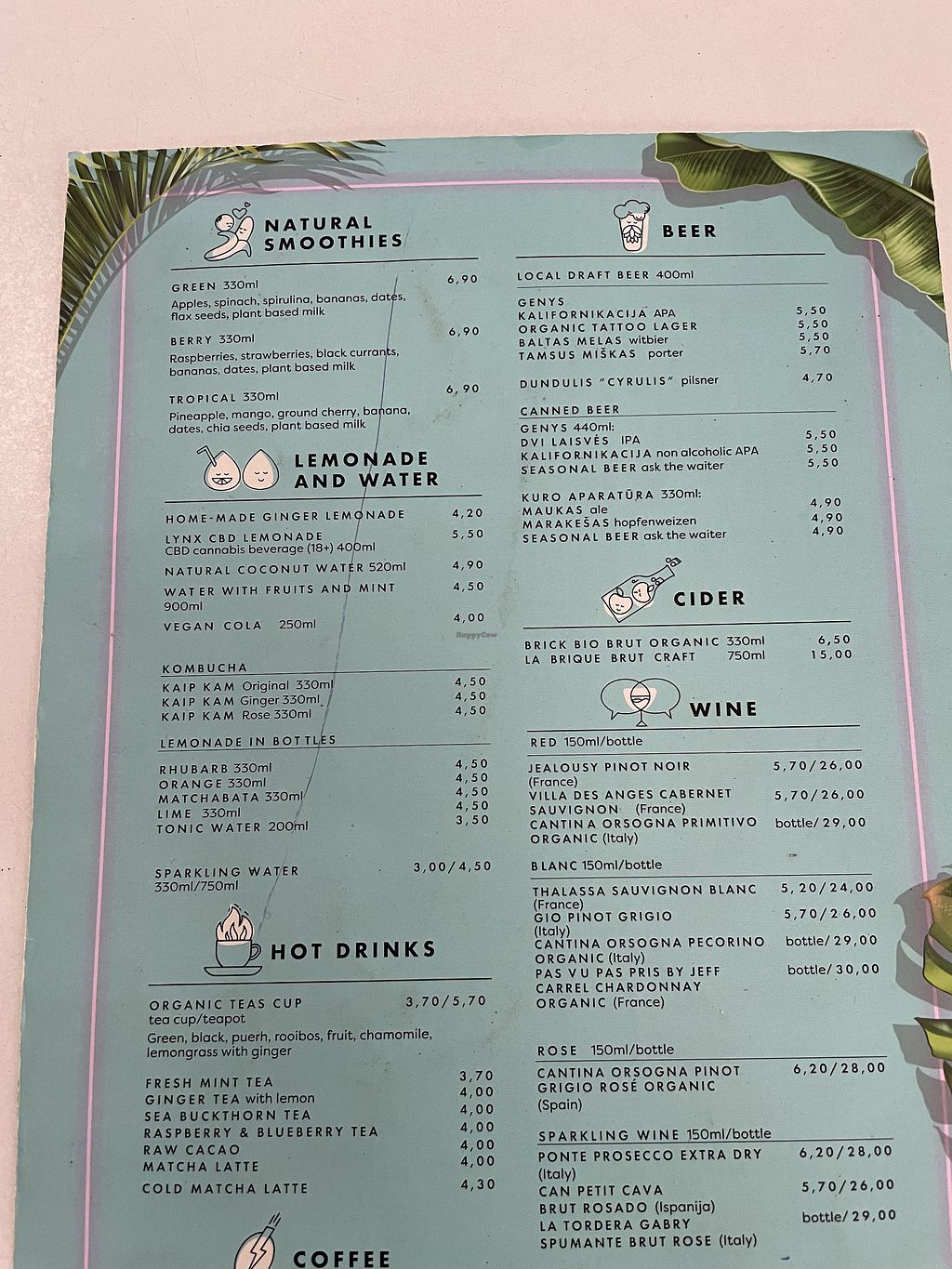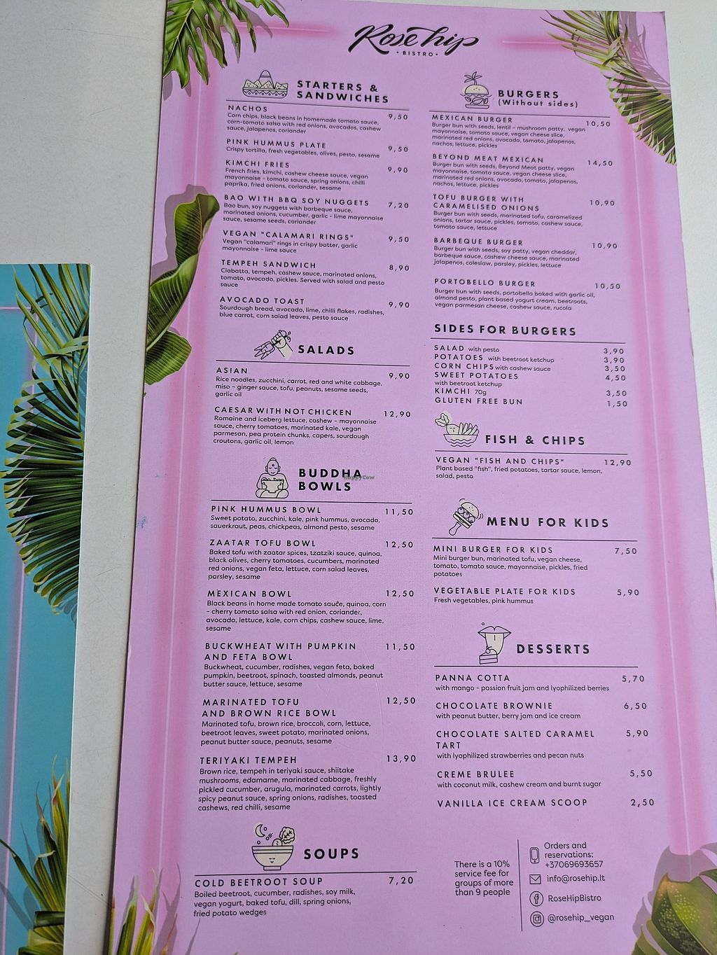 RoseHip, a fully vegan bistro nestled in the heart of Vilnius, offers a casual yet considered dining experience. We visited on a gloriously sunny evening and were fortunate to enjoy our meal outdoors on their shaded terrace. Despite being adjacent to a busy street, the ambience remained pleasant and undisturbed.