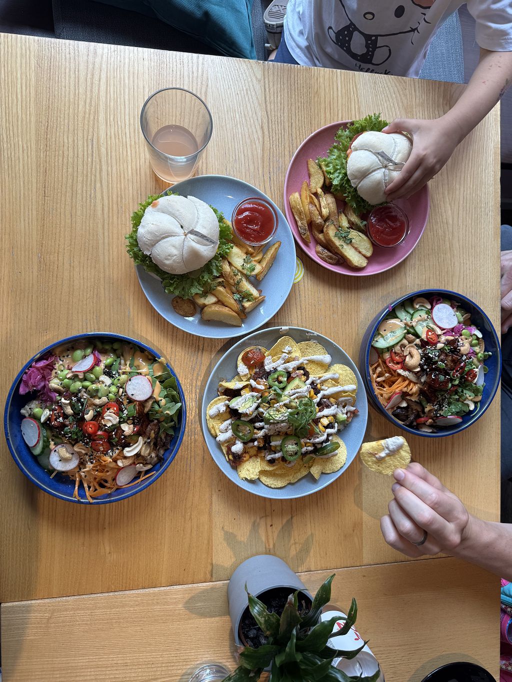 Typical vegan fast food with a few twists (like tartare sauce on the burger or the beetroot ketchup) but overall nothing special. Good drinks, friendly service.