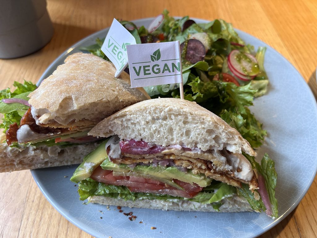 Had the tempeh sandwich, wine and kombucha. The sandwich came with a fresh salad with a nice basil. Also had the soy nuggets. The food was filling tasty and fresh and the local kombucha was good. Nice atmosphere and friendly staff. Rating it a 5 because overall it ws a really enjoyable and relaxing experience. Nice feel to the place.
