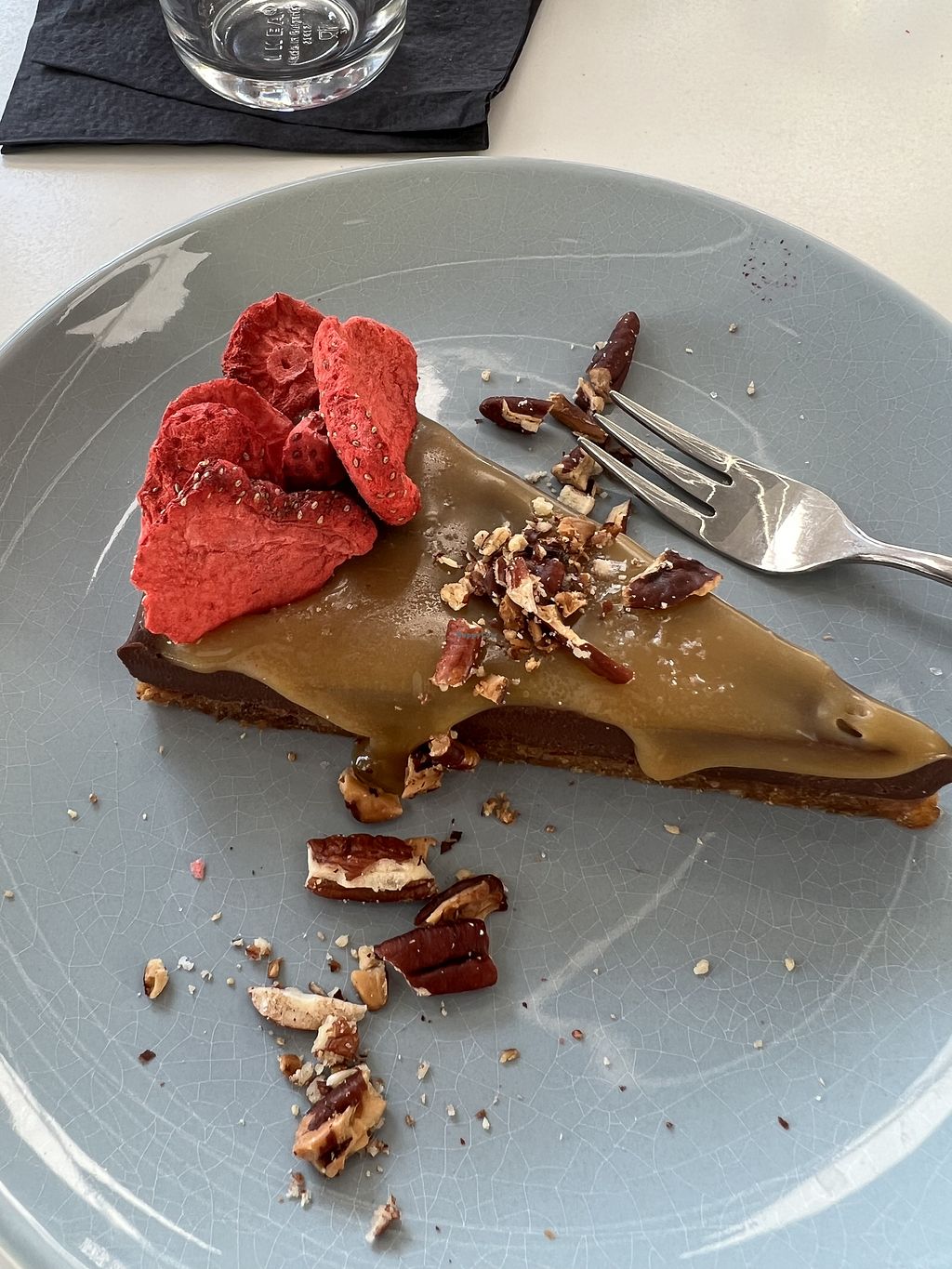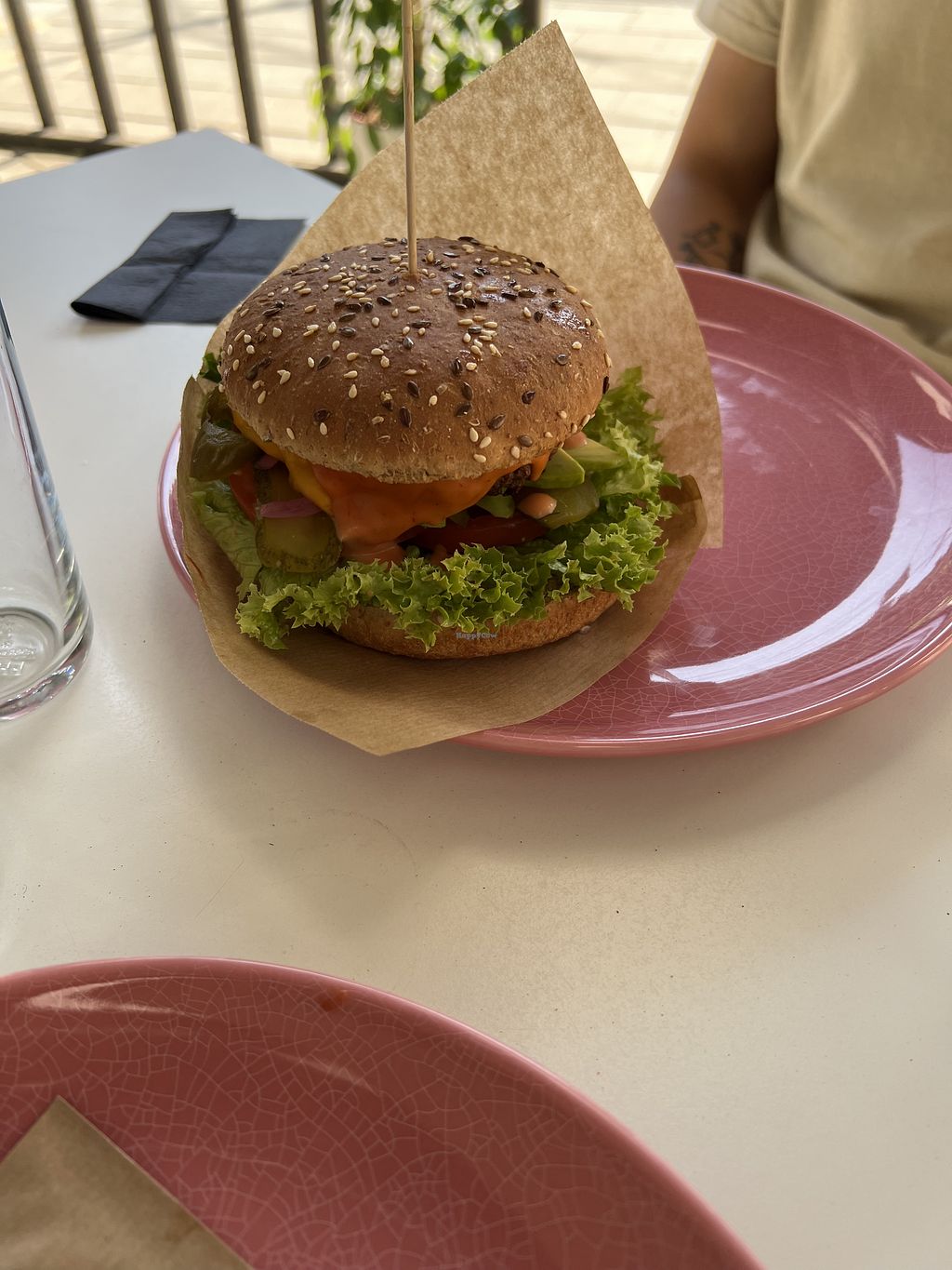 I went with 2 non vegan friends. Everyone left satisfied. We got the tofu burger (great taste and texture), cheese steak burger with bacon (surprisingly I liked this one even better than the tofu burger. It didn’t taste like fake meet, the edges had a very nice crisp to them, the flavors were more complex), beyond meat Mexican (first time consciously eating vegan 20 year old male, really liked his burger), pink hummus plate (satisfi iti f if your looking for veggies and good hummus), salted caramel torte (really yummy dessert, on the sweeter side, caramel was perfect thickness), lemonade rhubarb (ok, wouldn’t get again), beetroot latte (nice, not too sweet), margarita (friend likes it so much he ended up ordering a total of 4).