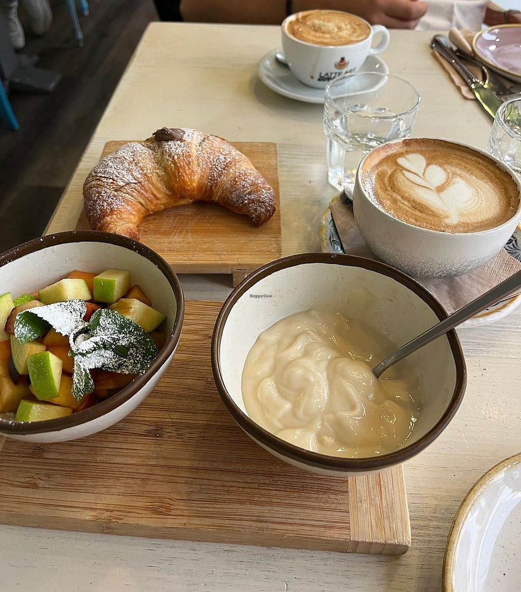 Lovely vegan options and the absolute best vegan croissant I have ever had! I was given one fresh out of the oven and oh my goodness, heaven!! I also enjoyed a fruit salad with soy yoghurt and a soy cappuccino. The vegan sandwiches and paninis sound amazing too! The best part of dining at Rosemary though was the service. From start to finish we were warmly greeted and looked after like we were family. For this reason alone we will be back tomorrow to support this lovely business.