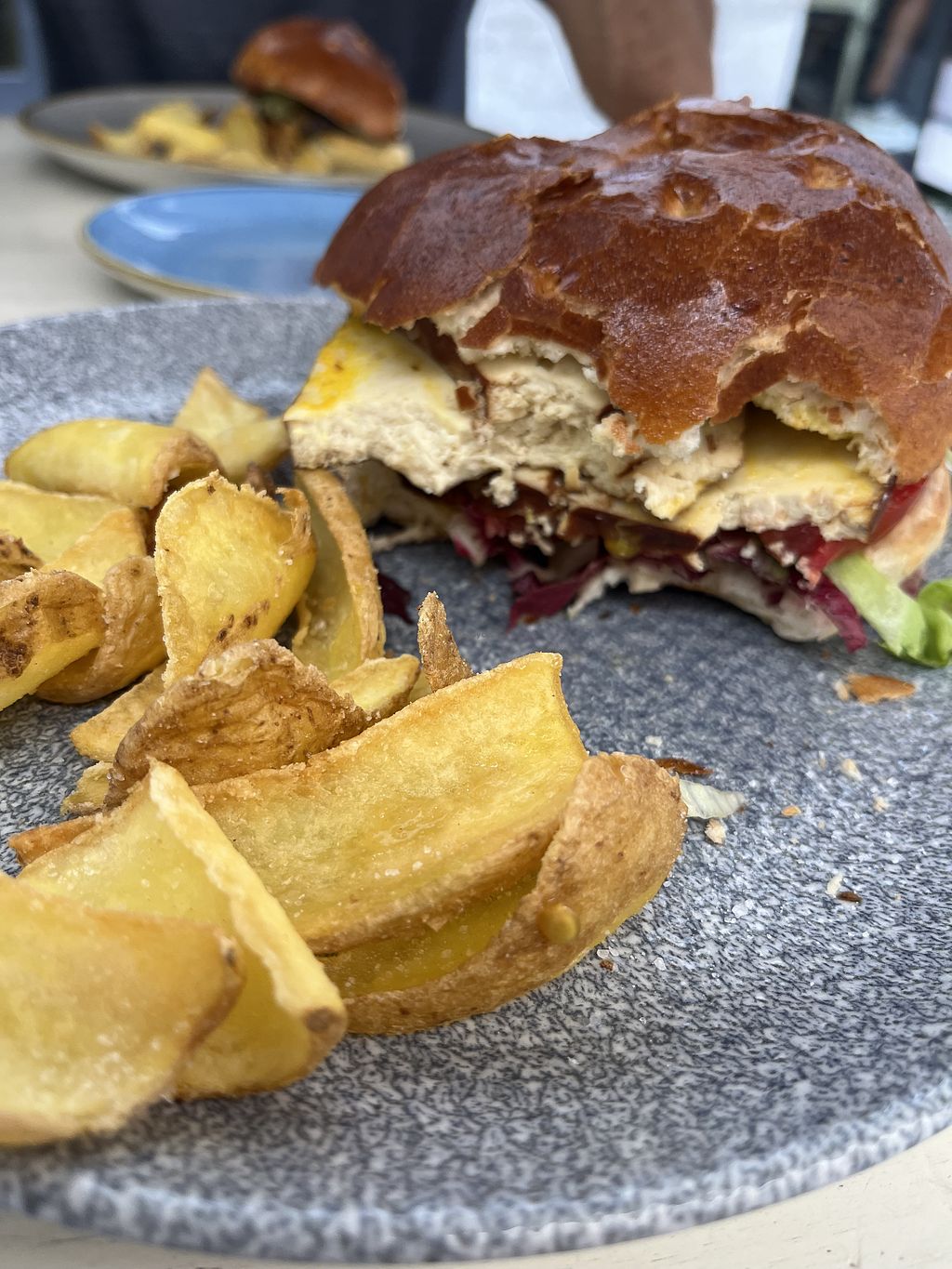 I was really needing protein and this sandwich has 3 thick slices of tofu. Excellent potatoes. Clearly marked vegan options!